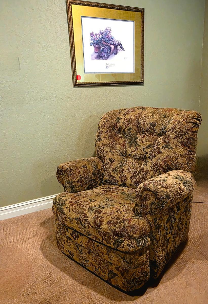 Floral recliner with Jodi Jensen art