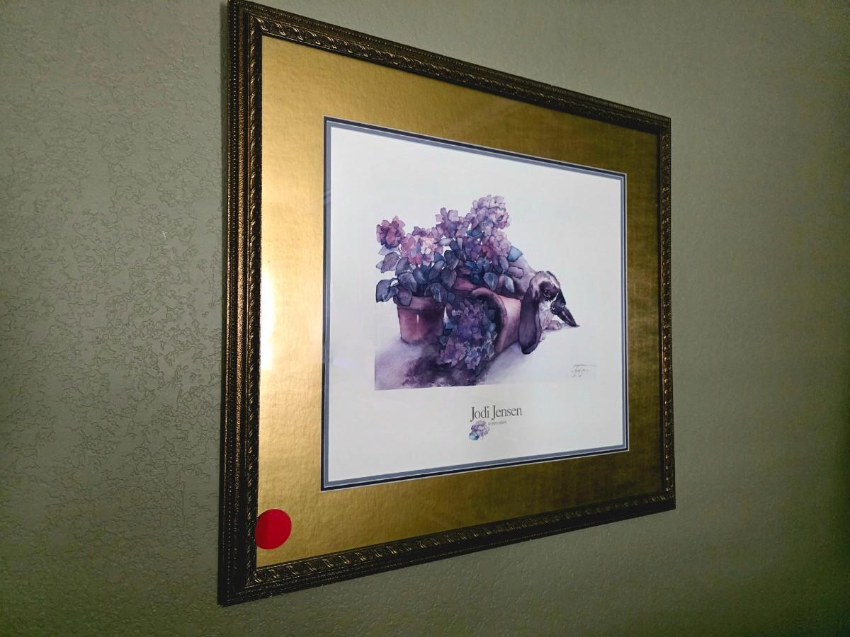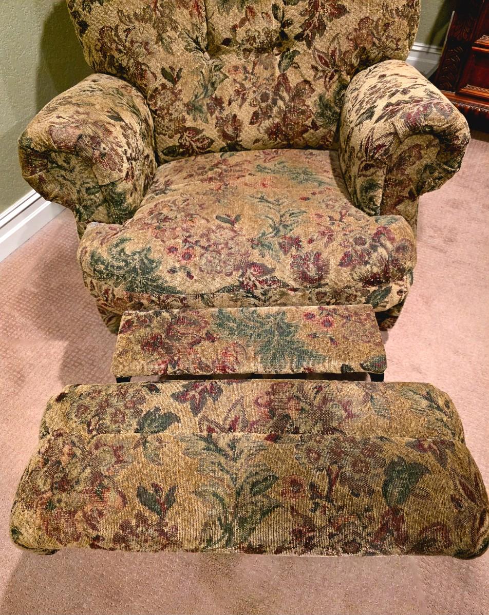 Floral upholstery manual recliner with 1 framed print by Jodi Jensen.