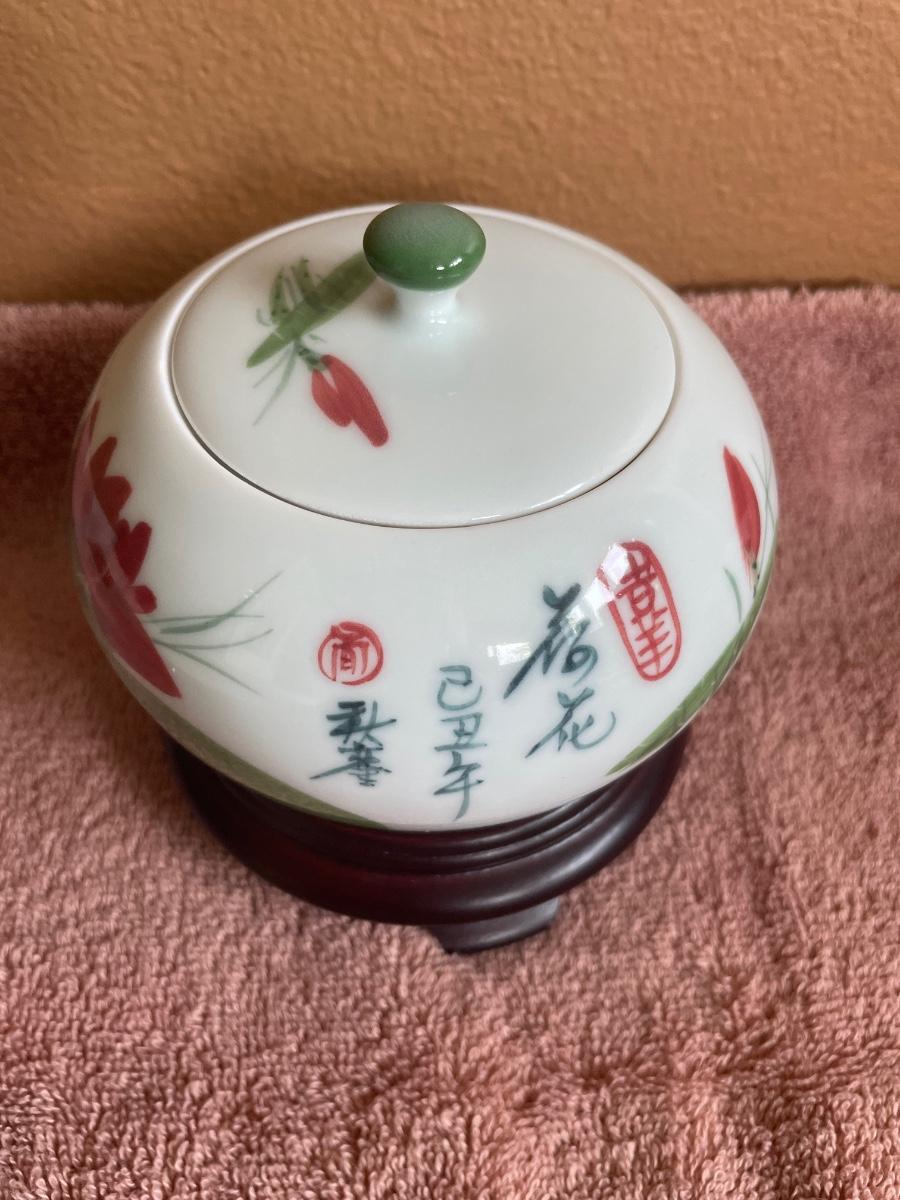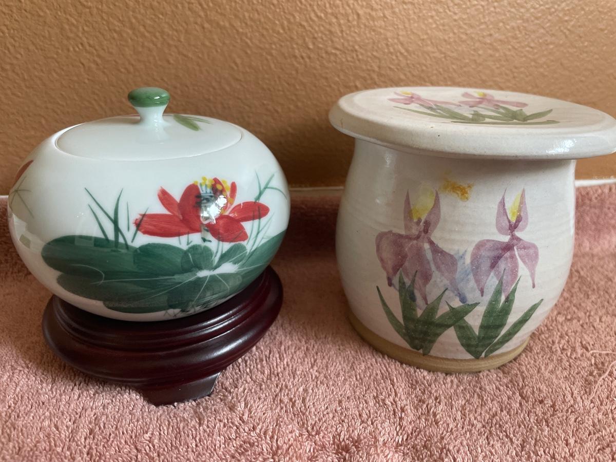 Floral stoneware and porcelain Asian jar