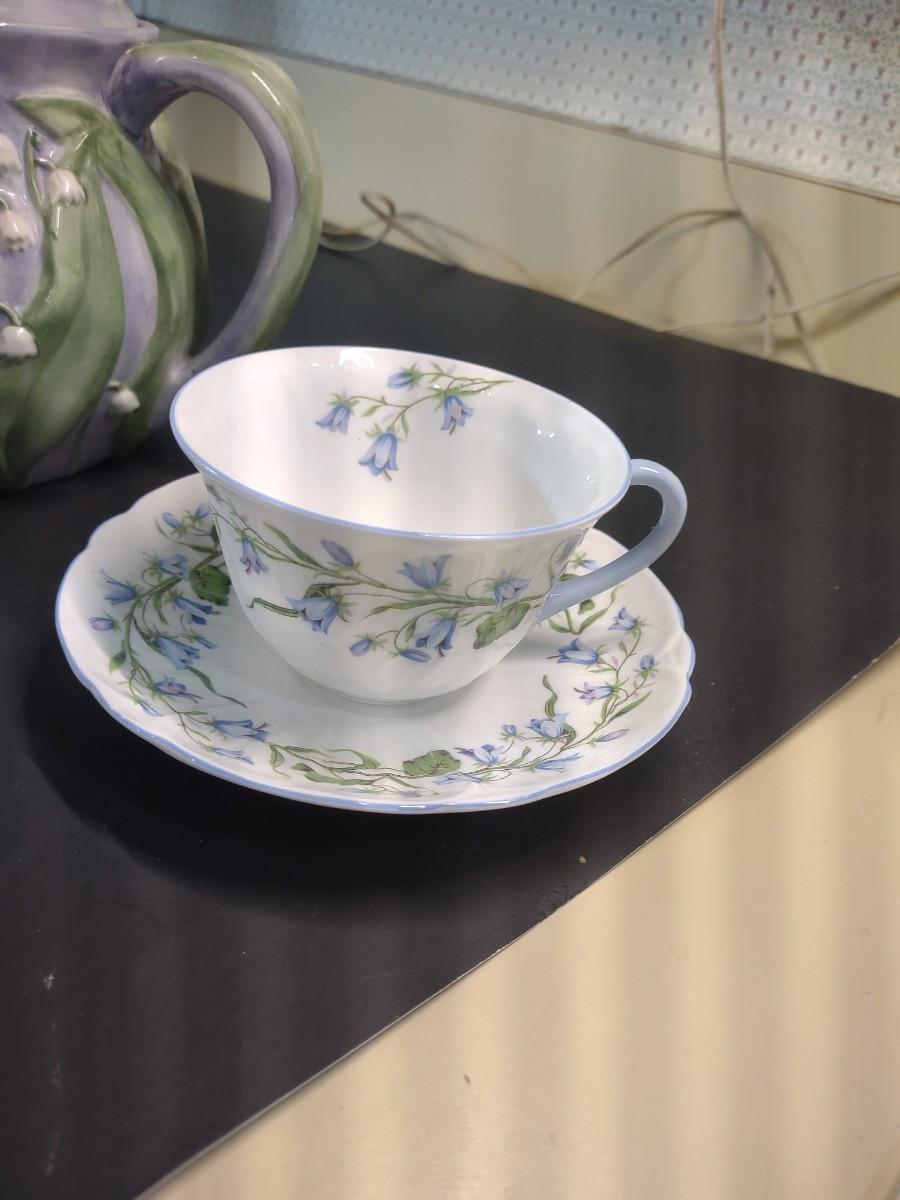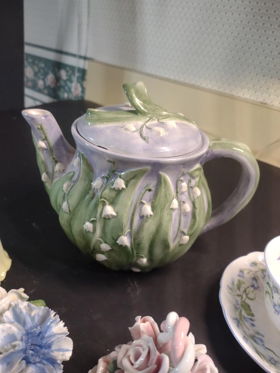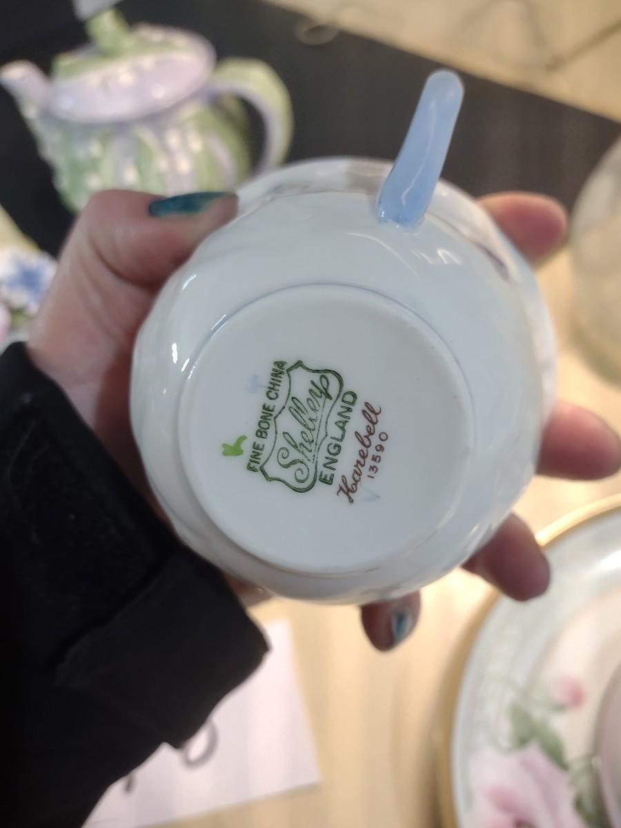 FLORAL TEAPOT AND BELL, SHELLEY CUP AND SAUCER PLUS MORE