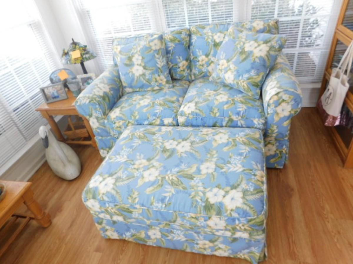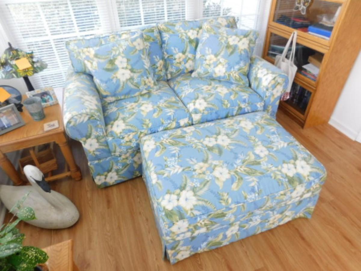Floral Theme Upholstered Loveseat with Matching Ottoman. Smoke free but has a loving pet inside home.