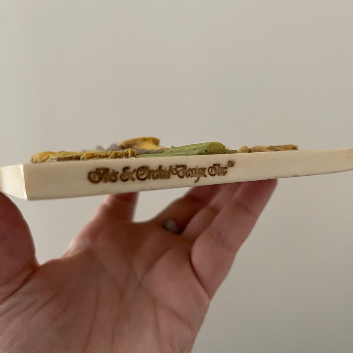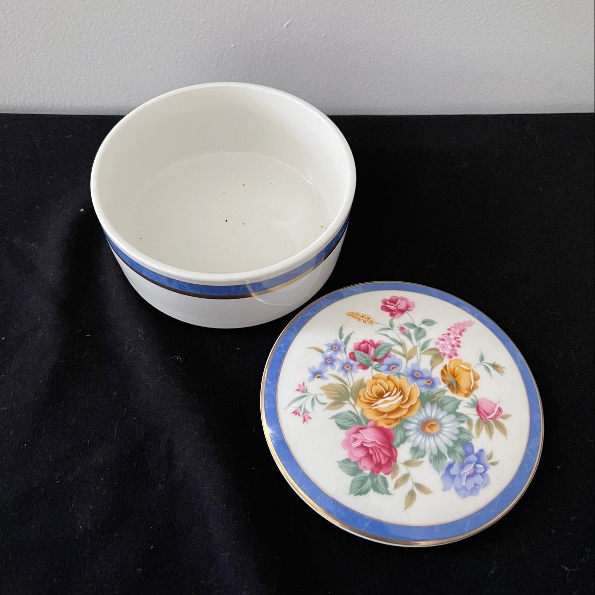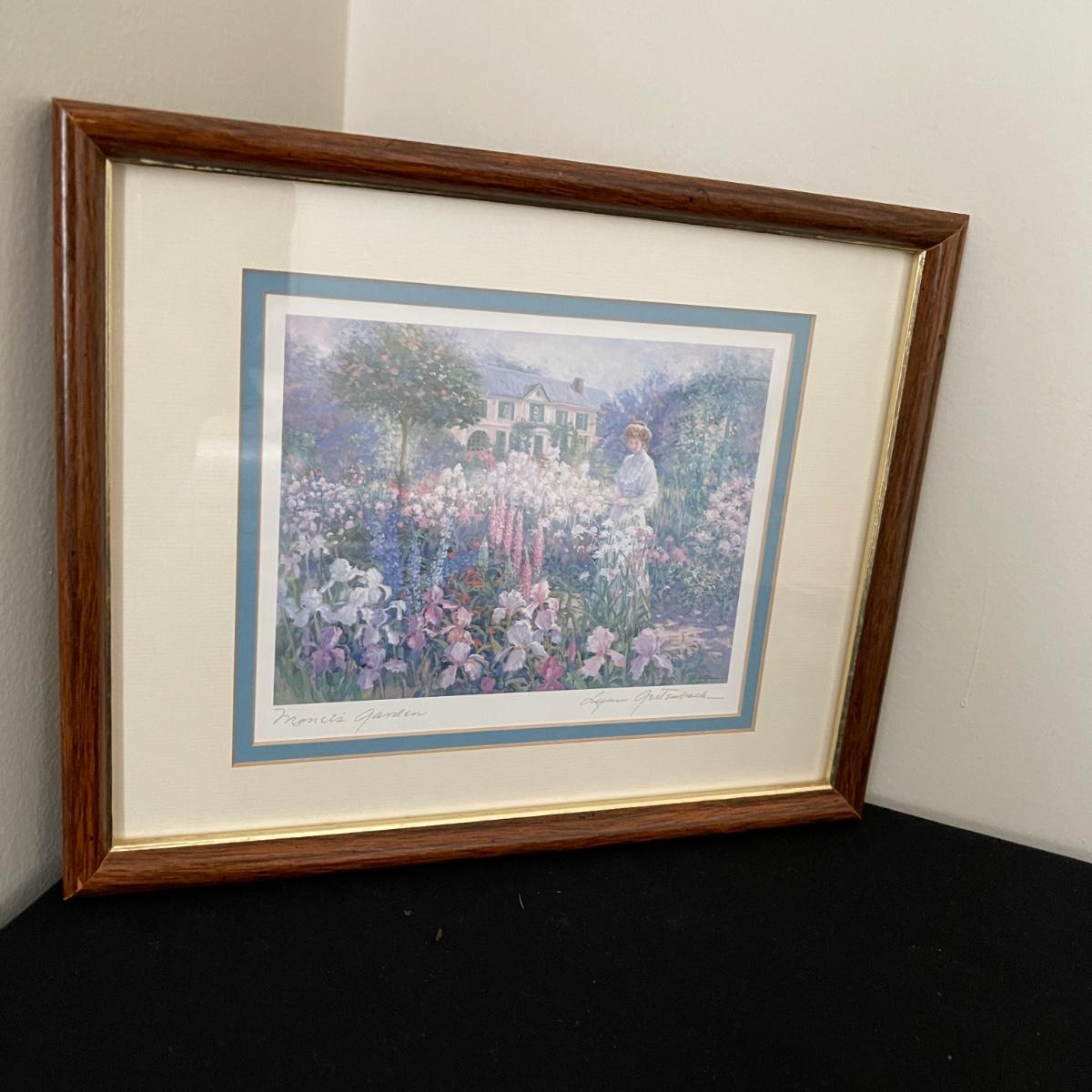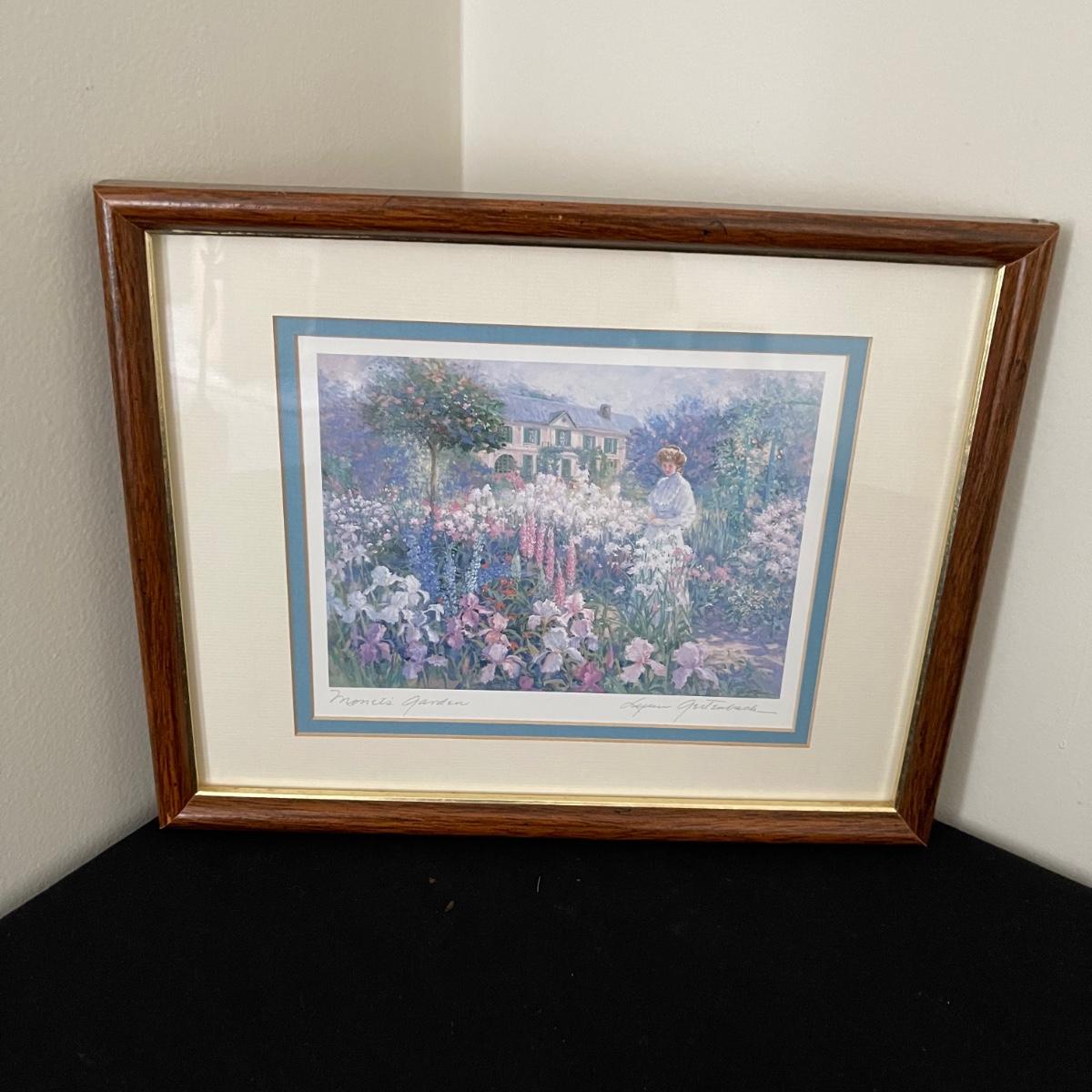 This lot includes framed artwork, a flower photo holder, two types of floral containers, and a decorative tile. The first art work is of a garden and it measure 9.5” x 11.75”. The second says “All Things Grow with Love” and has dried flowers. One of the lidded containers is ceramic with gold trim. The other is wooden with hand painted flowers.