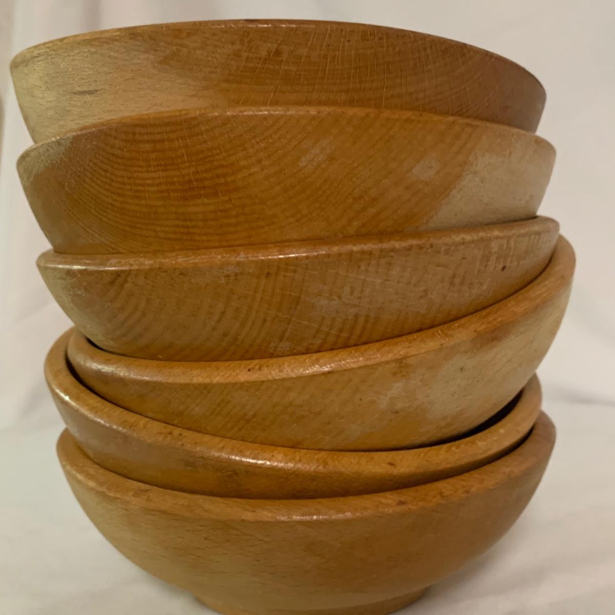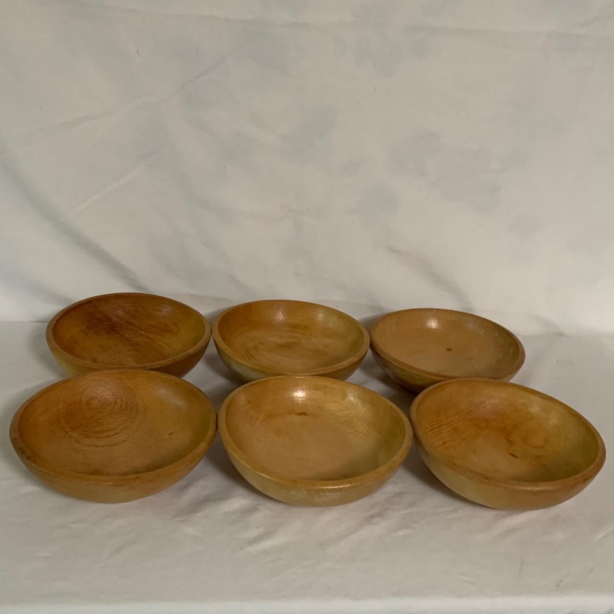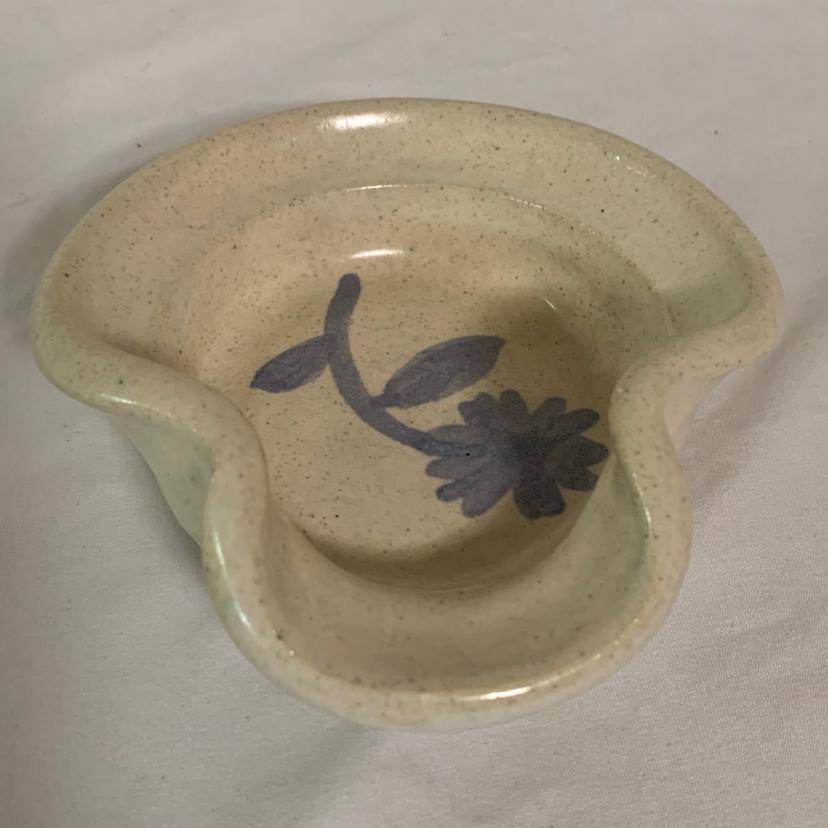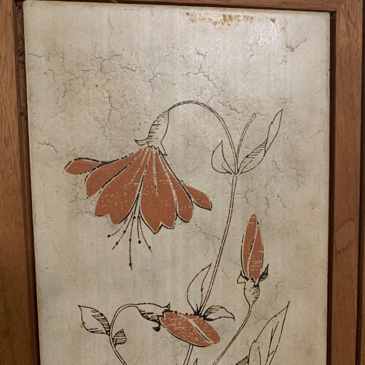 A variety of lovely and unique kitchen decor. There are two floral trivets. One is wood and hand painted with flowers. The other has a wood base/frame and ceramic tile center, by Sintopress. This one measures 8.75” x 14.5”. Also included is a wood napkin holder from Three Mountaineers, a ceramic spoon rest signed “Fletcher”, a ceramic salt and pepper shaker set, six wood bowls, and four wood spoons. All items are used, but structurally in good condition. The napkin holder, wood bowls, and wood spoons show a bit of wear, see photos.