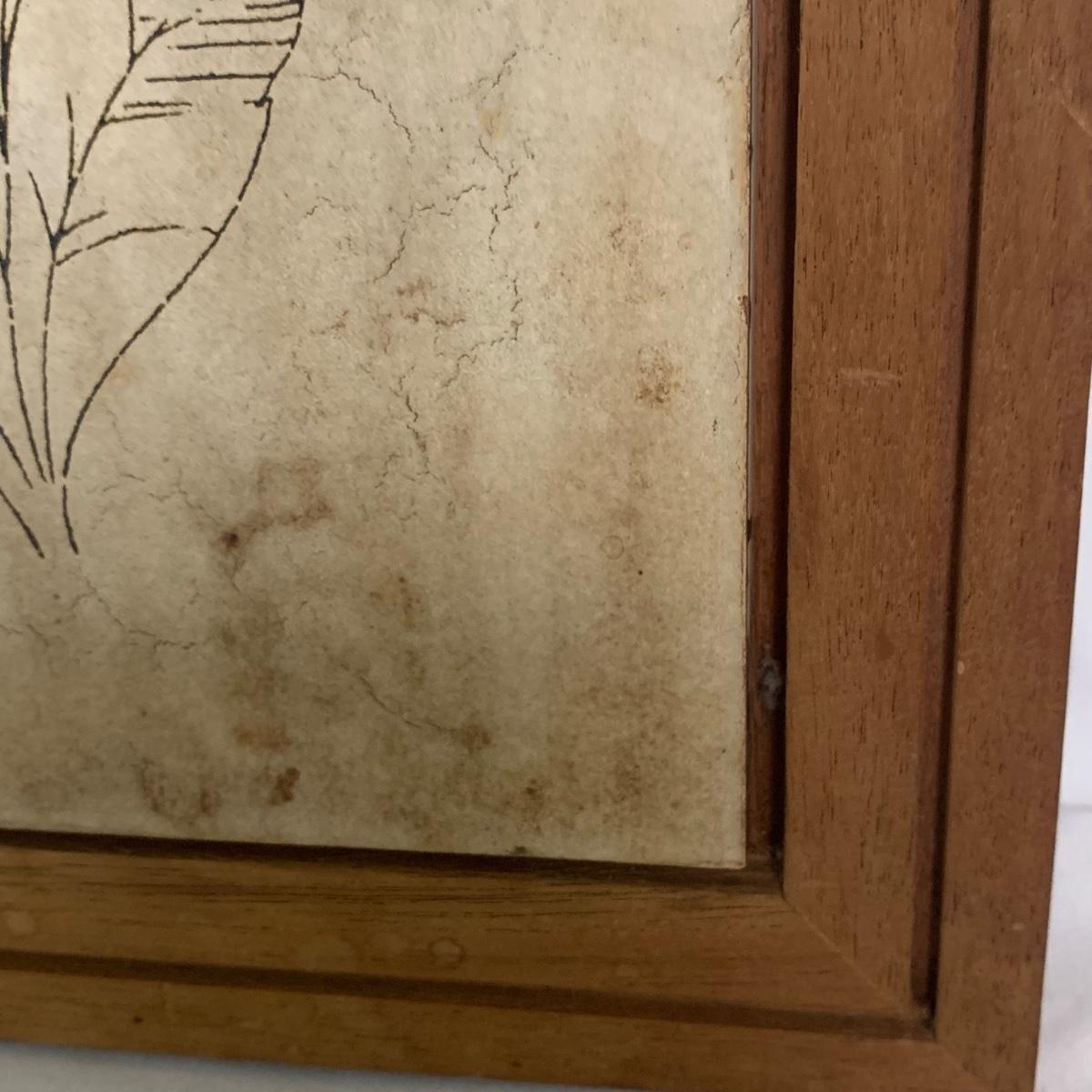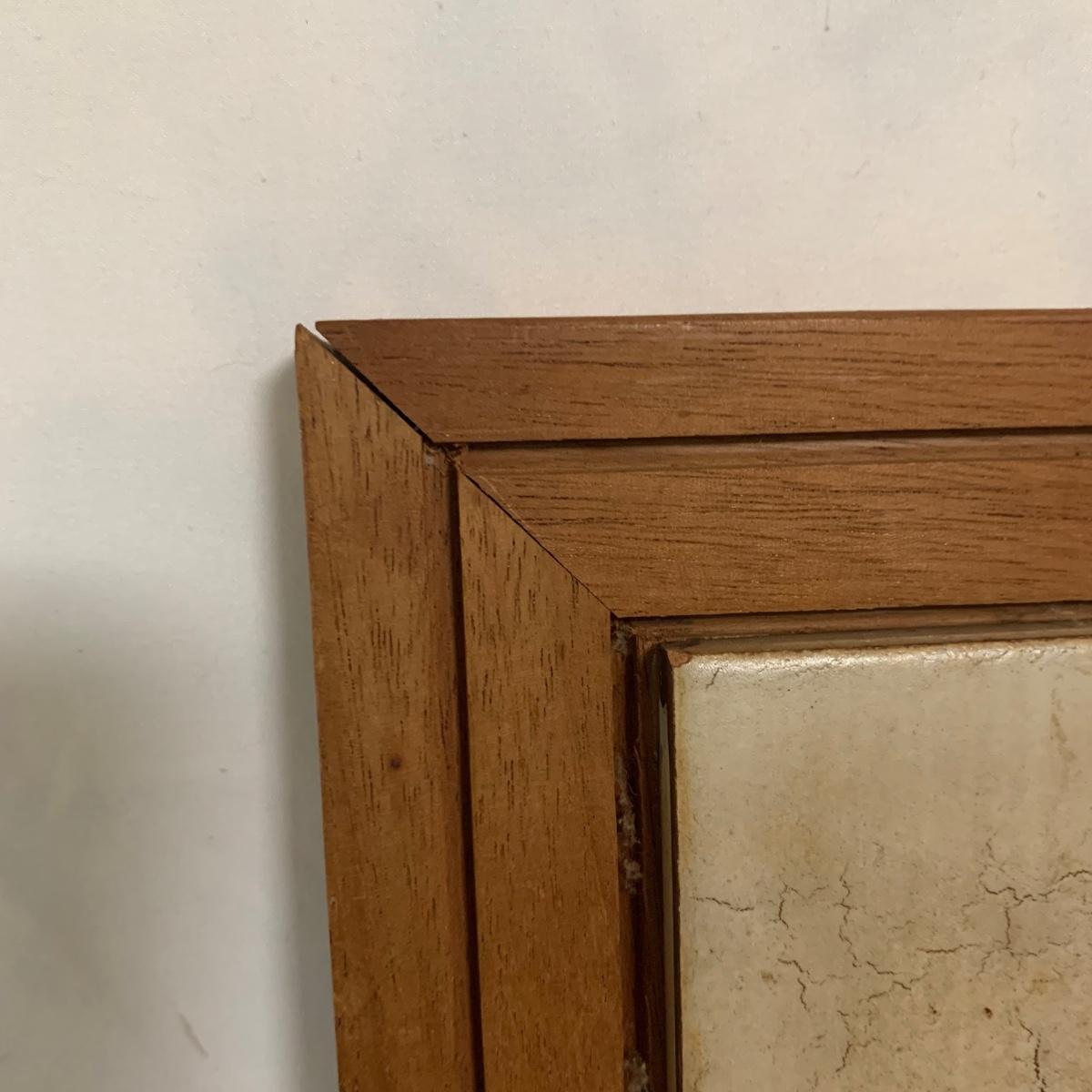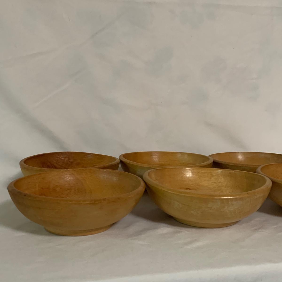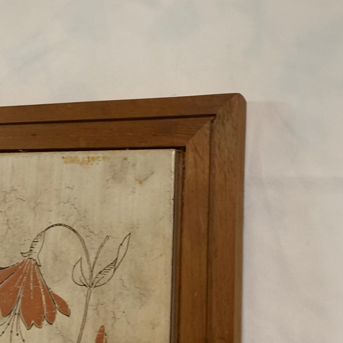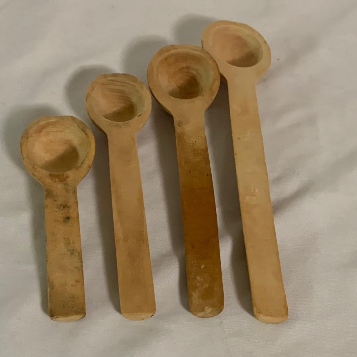 A variety of lovely and unique kitchen decor. There are two floral trivets. One is wood and hand painted with flowers. The other has a wood base/frame and ceramic tile center, by Sintopress. This one measures 8.75” x 14.5”. Also included is a wood napkin holder from Three Mountaineers, a ceramic spoon rest signed “Fletcher”, a ceramic salt and pepper shaker set, six wood bowls, and four wood spoons. All items are used, but structurally in good condition. The napkin holder, wood bowls, and wood spoons show a bit of wear, see photos.