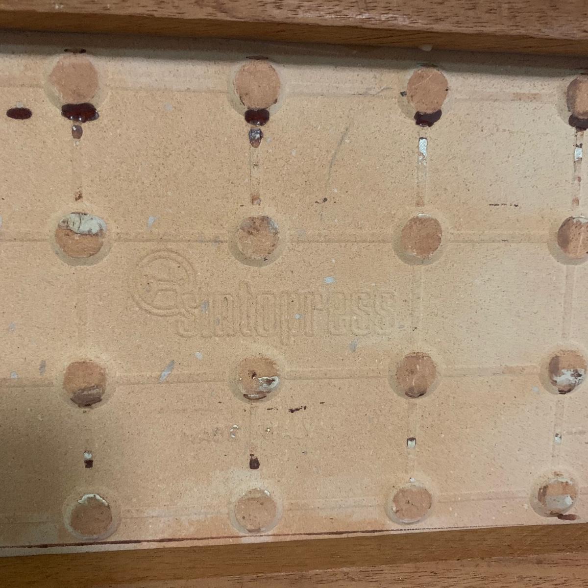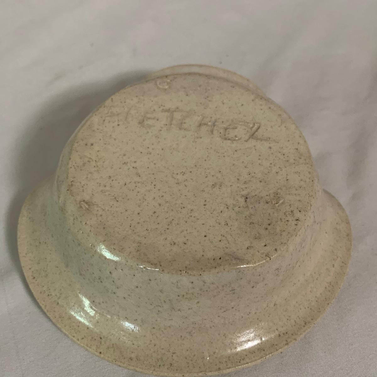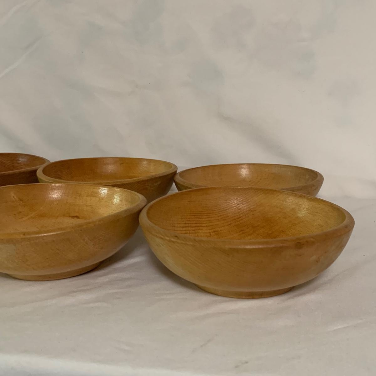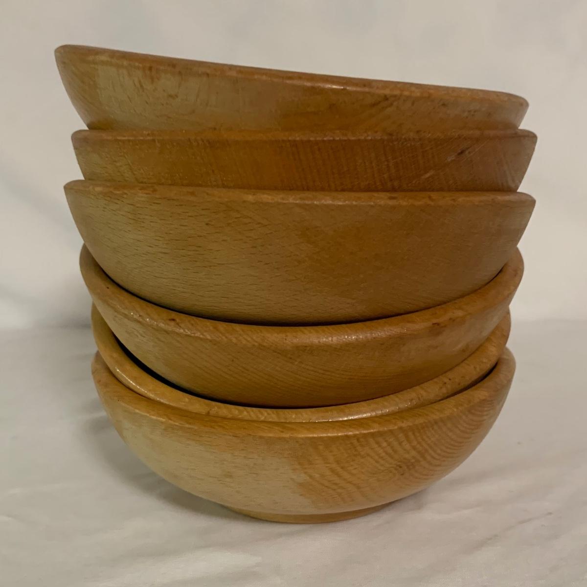 A variety of lovely and unique kitchen decor. There are two floral trivets. One is wood and hand painted with flowers. The other has a wood base/frame and ceramic tile center, by Sintopress. This one measures 8.75” x 14.5”. Also included is a wood napkin holder from Three Mountaineers, a ceramic spoon rest signed “Fletcher”, a ceramic salt and pepper shaker set, six wood bowls, and four wood spoons. All items are used, but structurally in good condition. The napkin holder, wood bowls, and wood spoons show a bit of wear, see photos.