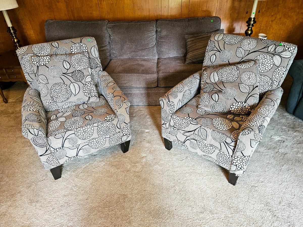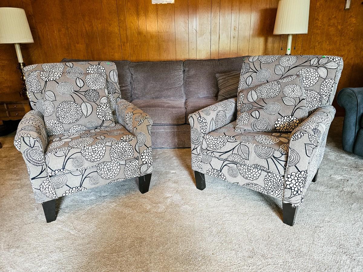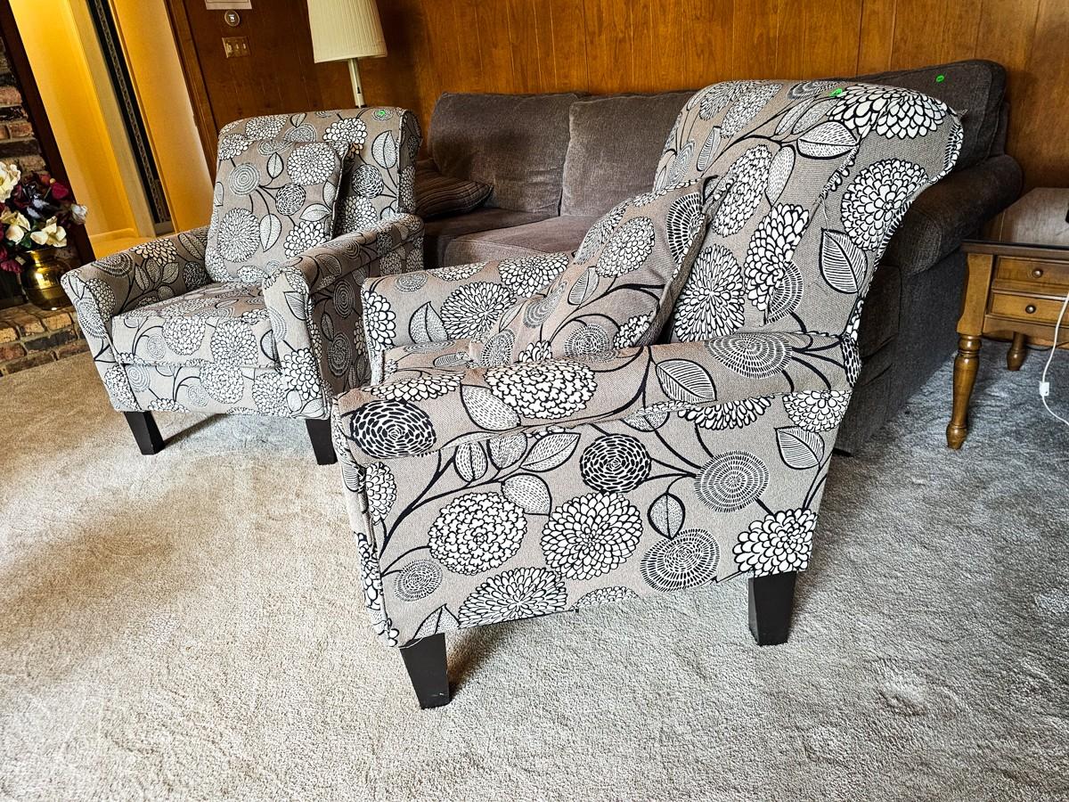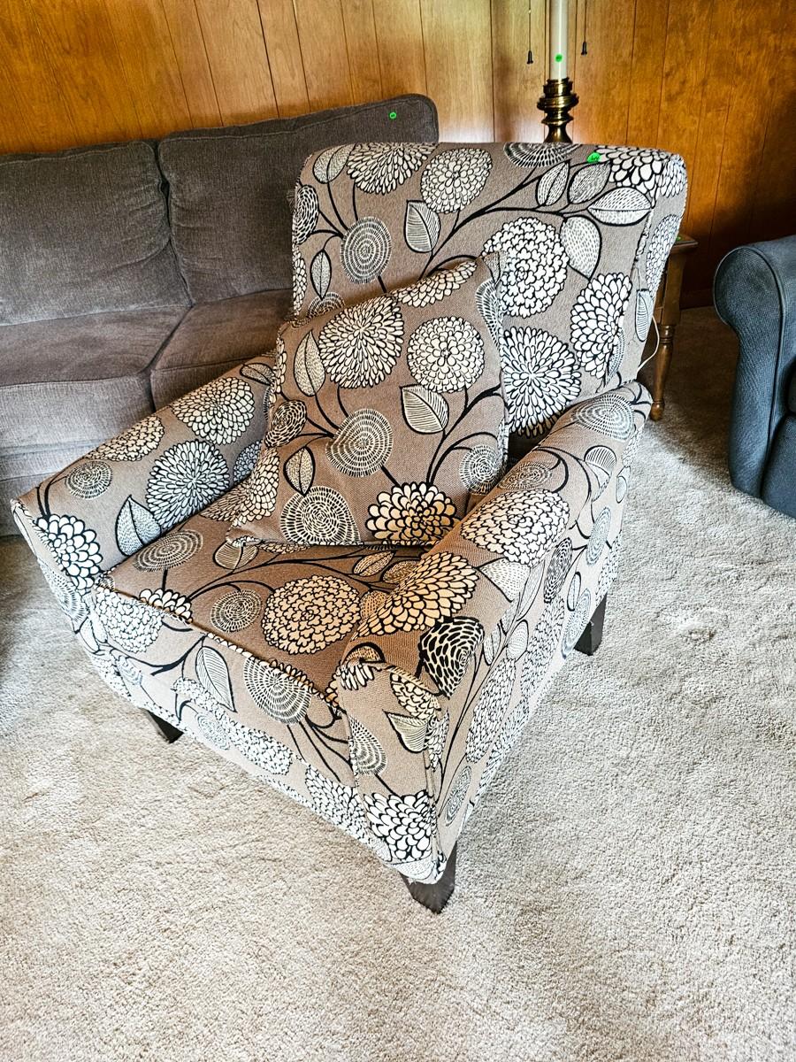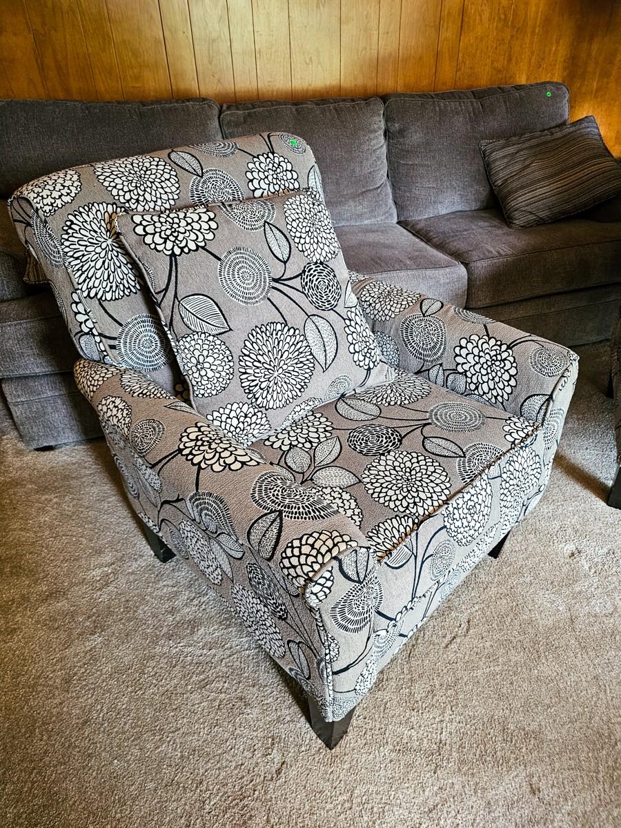 Grey and white upholstered armchair with floral print (2 of 2)