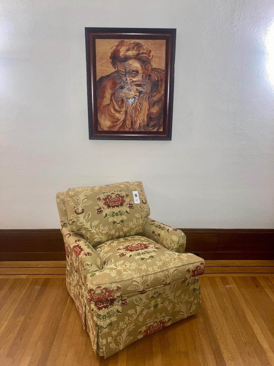 Hand made 20th century Floral Upholstered Club Armchair appraised at $200, chair only, 30 x 33 x 31 inch