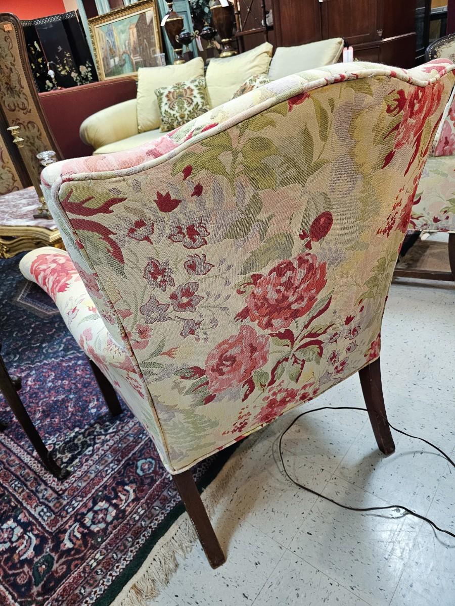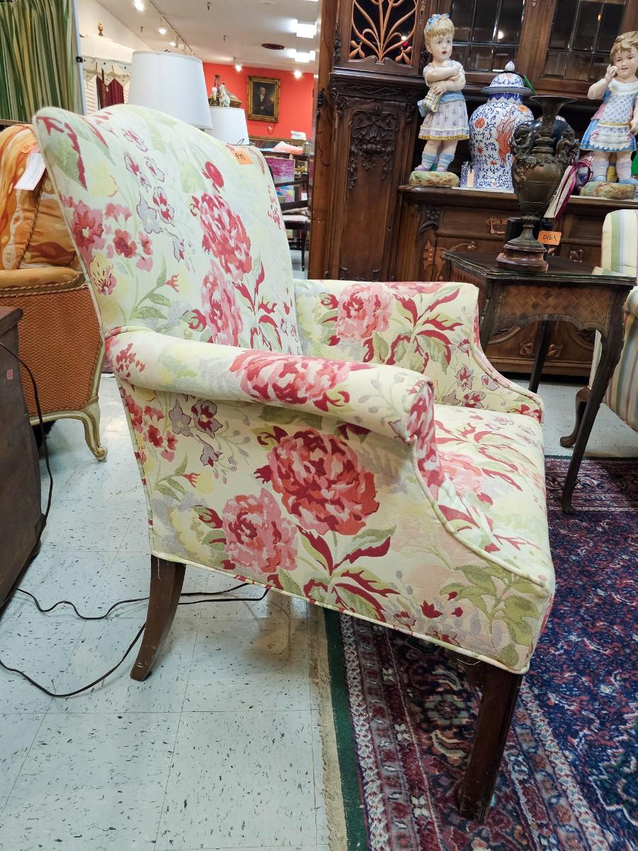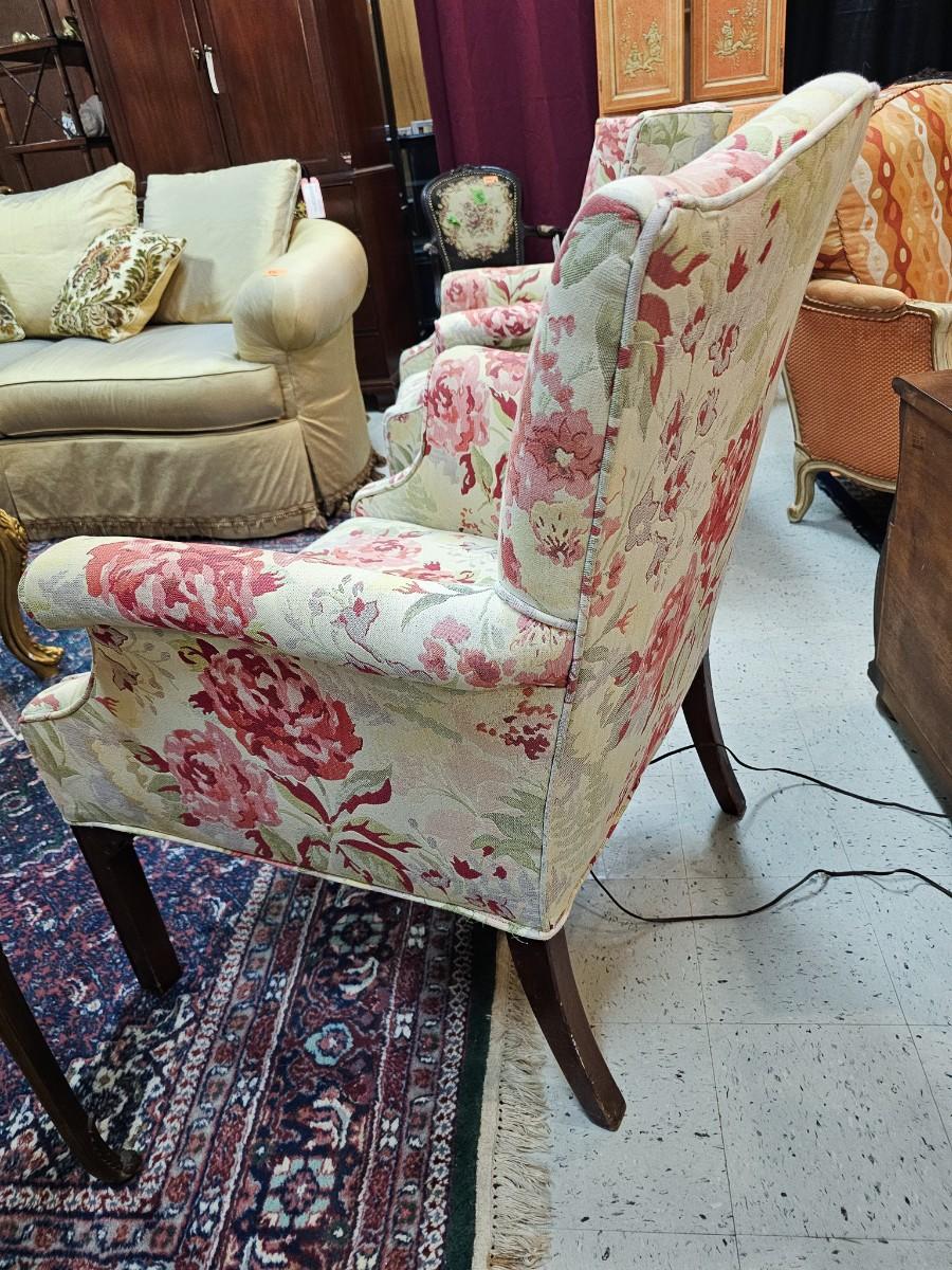 Wingback chair w/rose fabric, 27"W x 26"D x 38"H back, 18" H seat