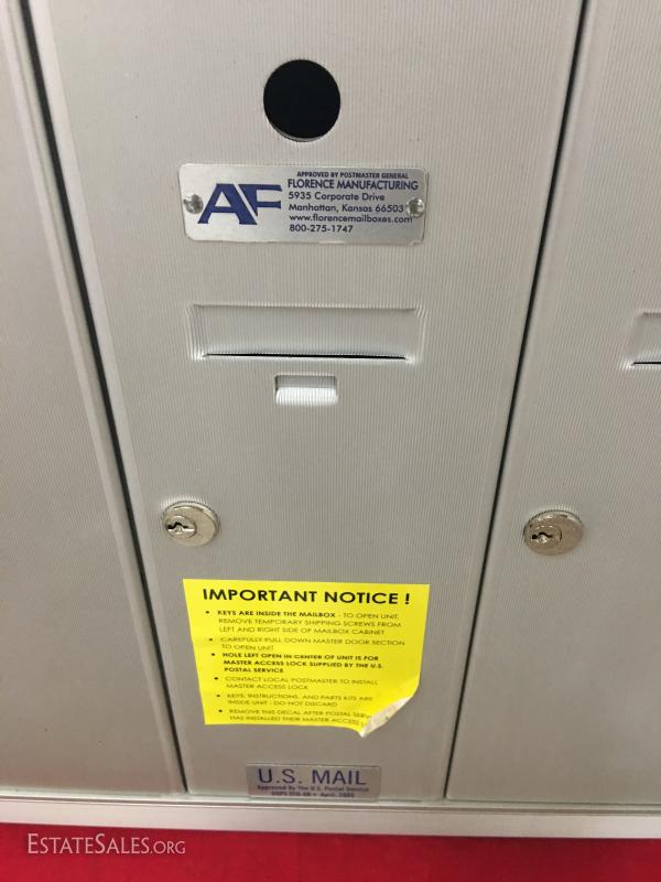 Florence Mail Boxes 6-UNIT Aluminum NEW. Measure 36" by 20". Brand new in box with frame and keys 6 mail boxes. 2 of 2 units listed.