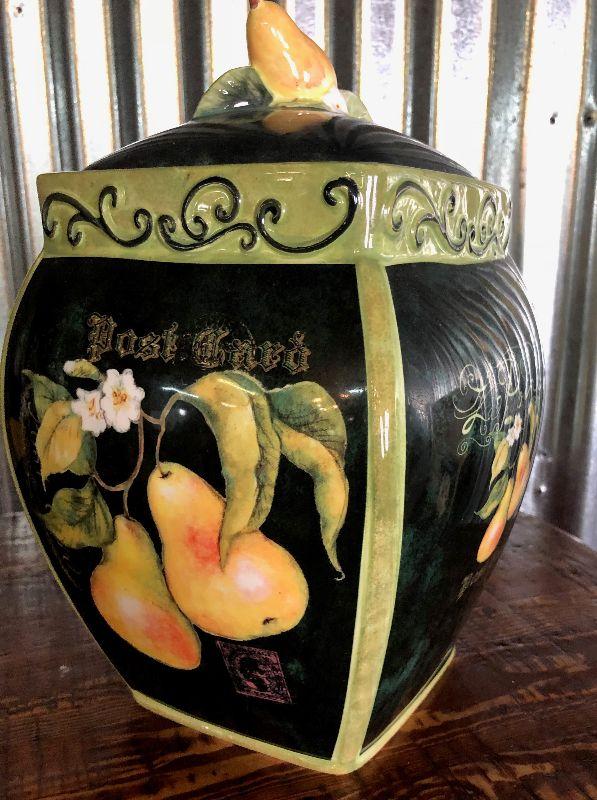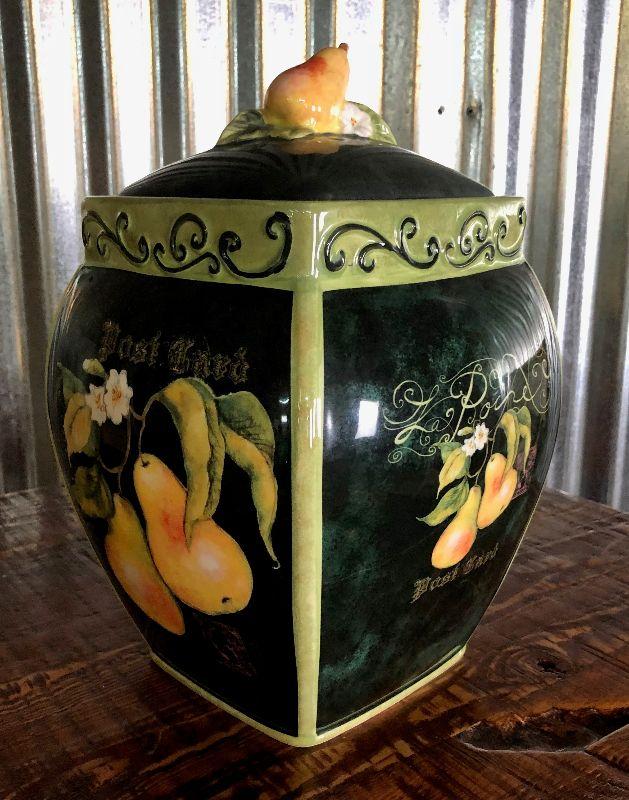Here is a unique ceramic cookie jar..embellished with pears....