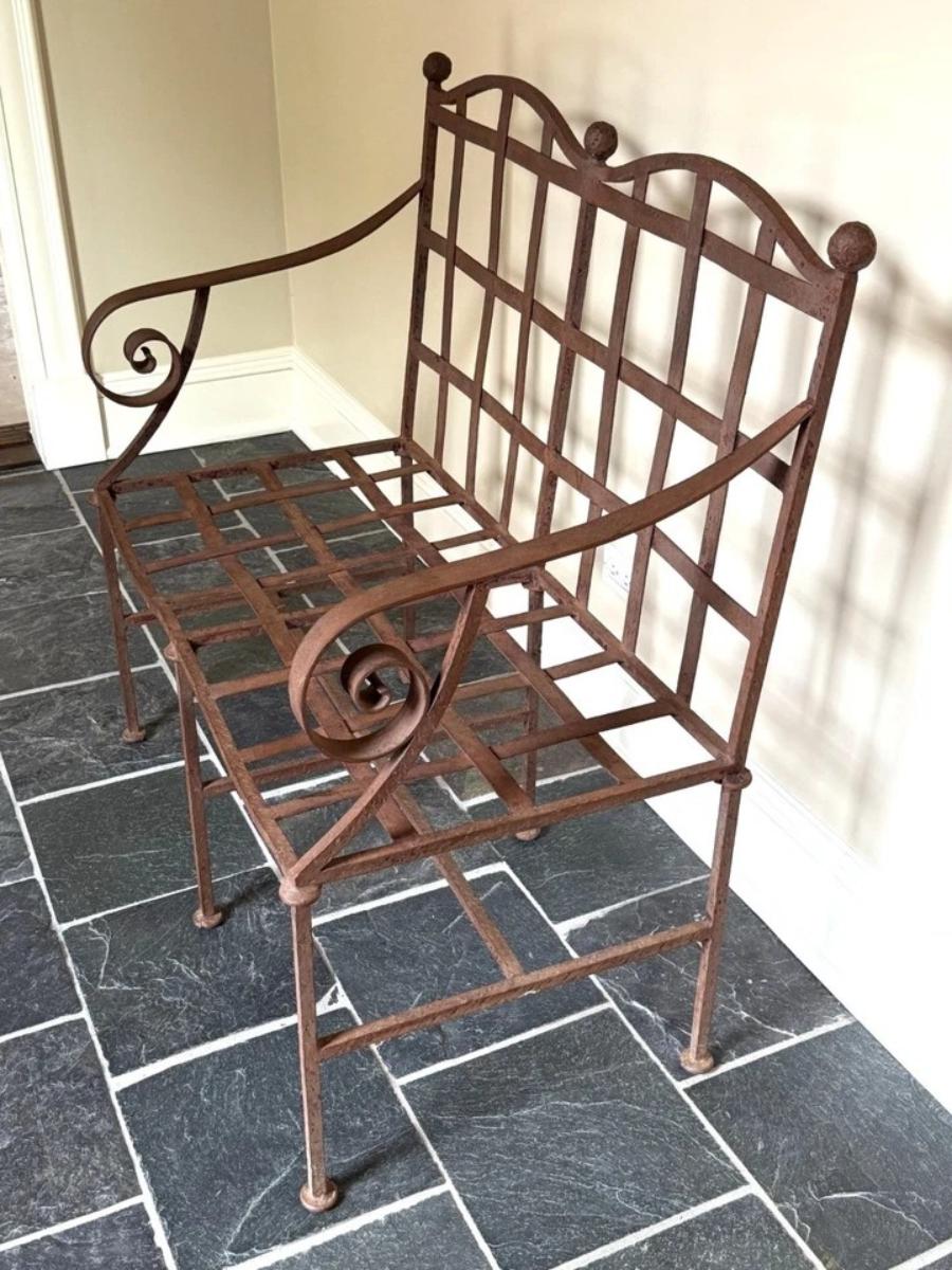 Vintage Florentine Wrought Iron Metal Garden Bench 39" x 20" x 40"