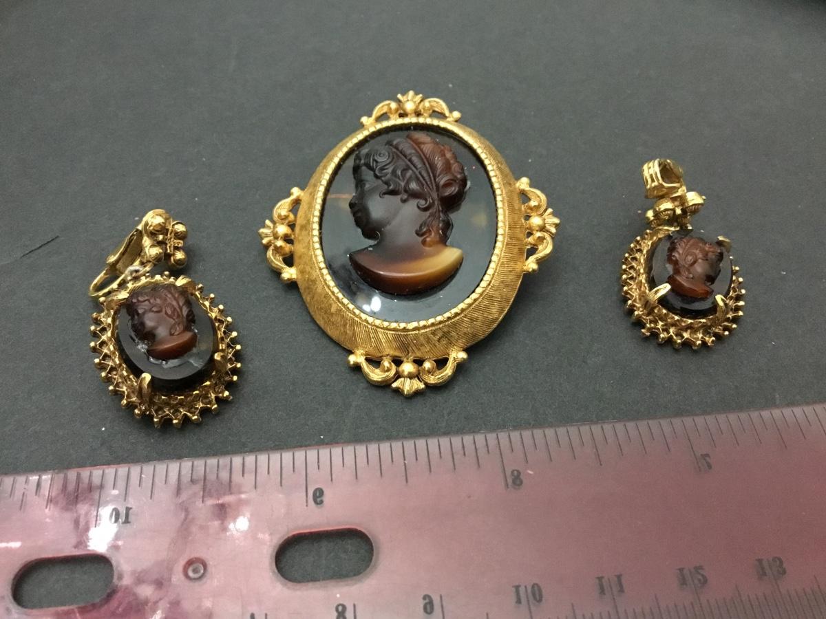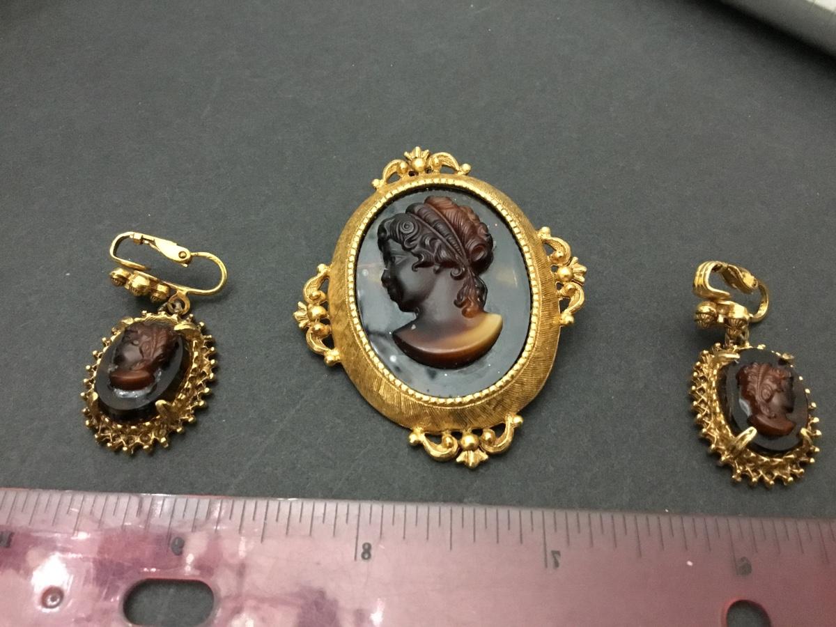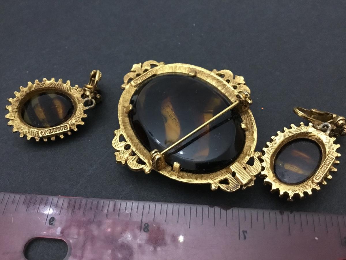 Florenza Brooch with Florenza Earrings. Excellent Condition Tortoise shell Glass Vintage