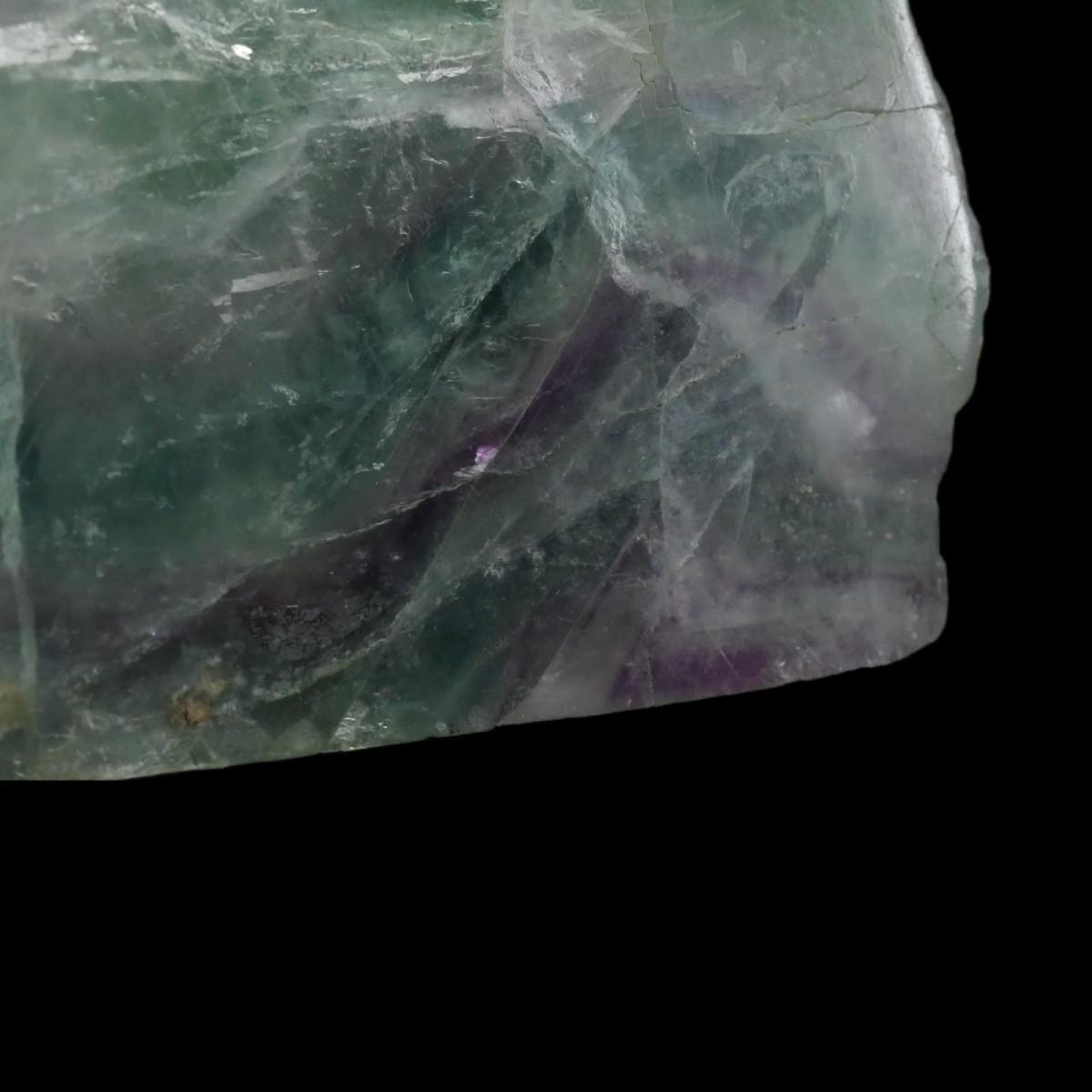 Two flourite specimens. Gorgeous green and purple piece originates from La Fluorita Dulcita prospect, Cochise County, Tombstone, Arizona. One polished side on piece. Stunning purple and white piece has unknown origin and is fully raw. Both in great condition. Stand not included. Largest measures L 4" x H 4" x W 1.75". Lot weighs 1 lb 9 oz. (R24)