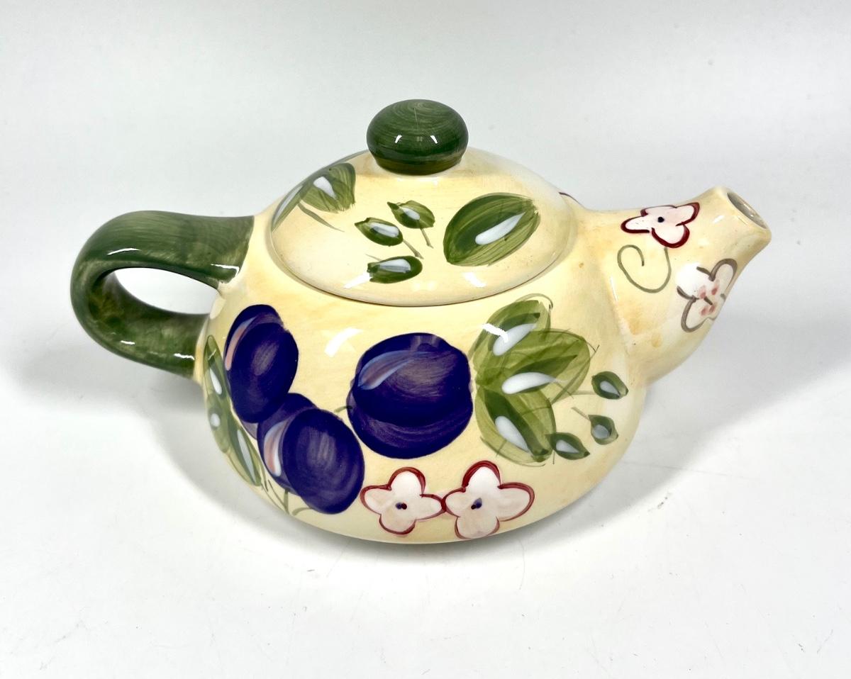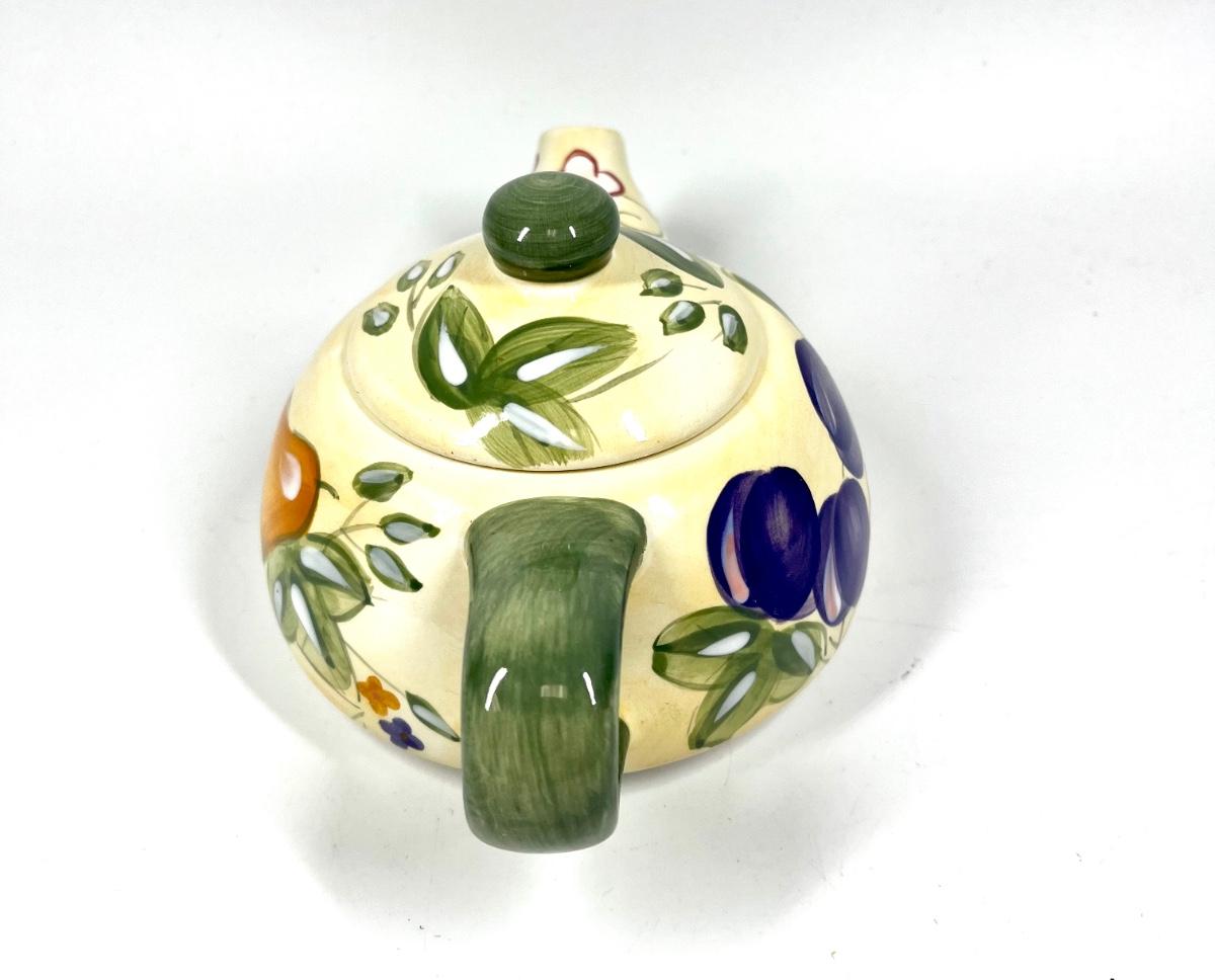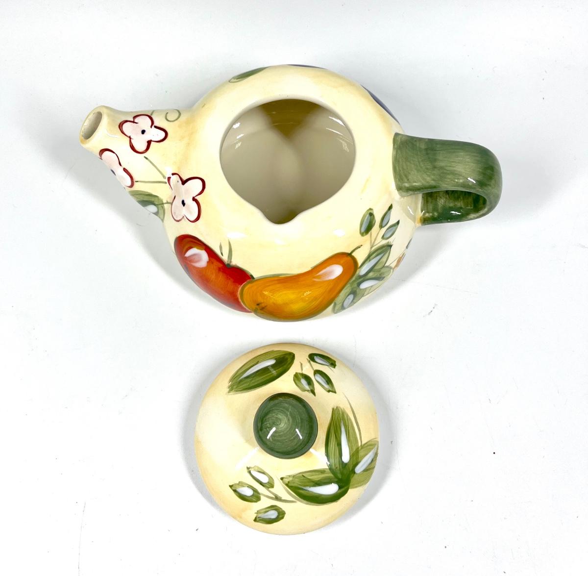 Fruit and Flower Ceramic Teapot with Green Trim. In good condition.