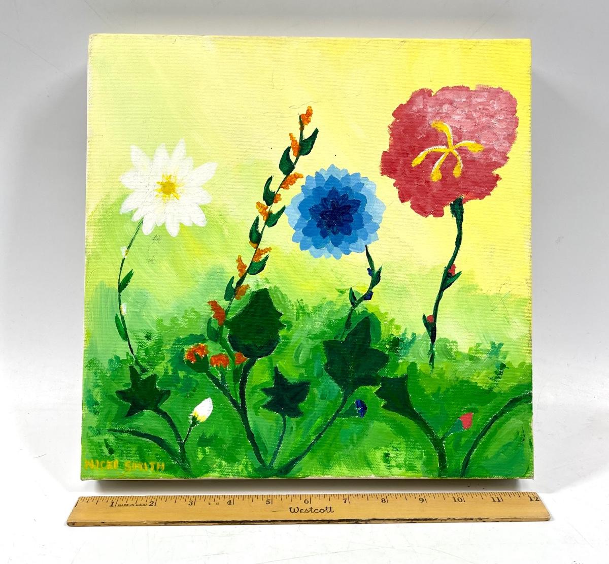 Colorful Unframed Flower Painting Amateur Artist Signed