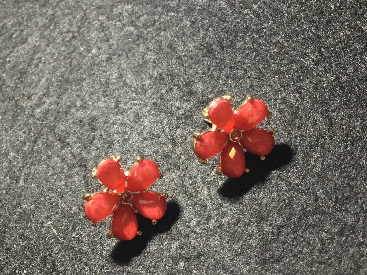 Flower coral colored stud earrings