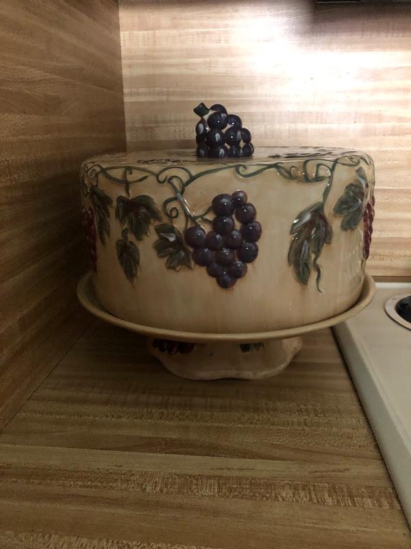 Flower decorated cake platter with lid