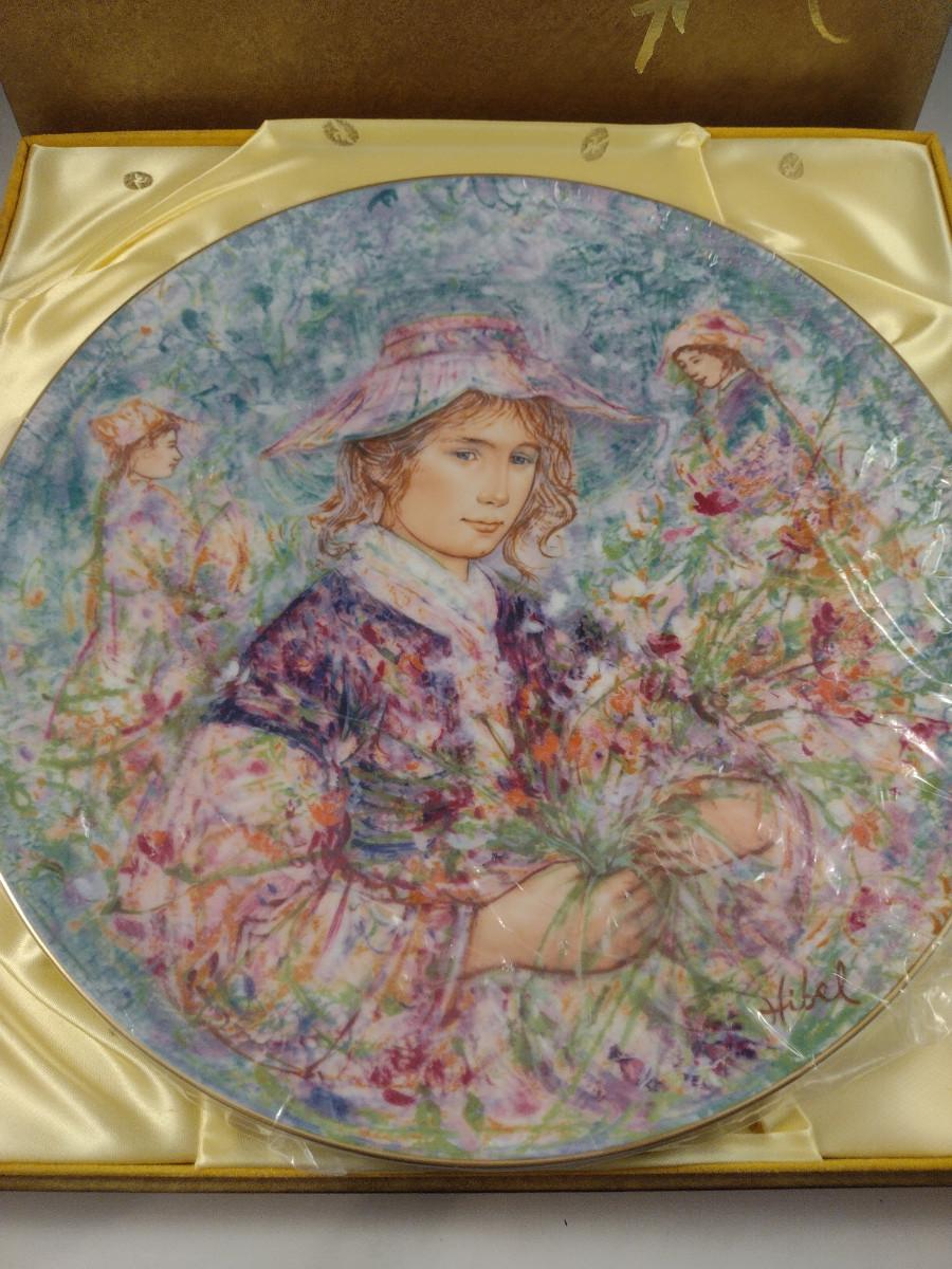 'Flower Girl of Provence' by Edna Hibel Commemorative Plate with Box- Approx 13" in Diameter