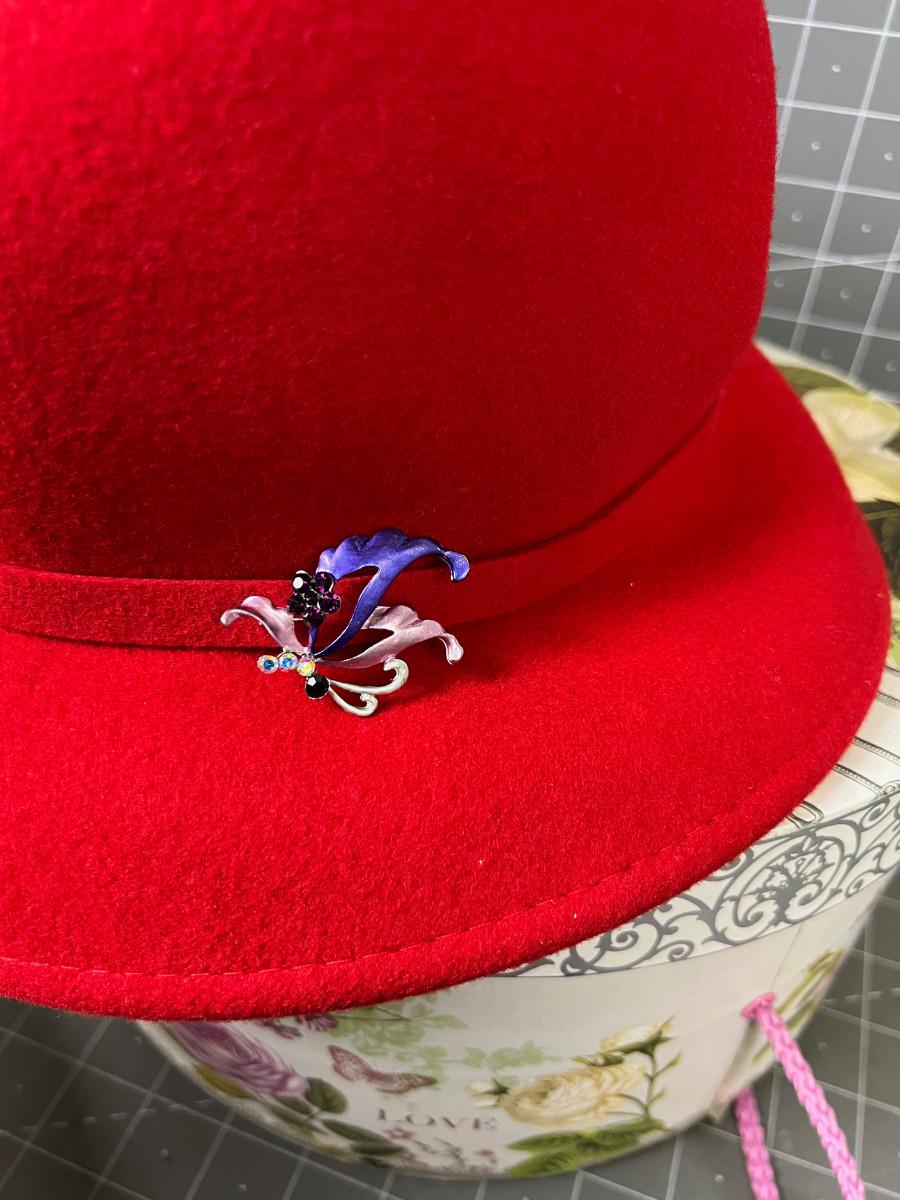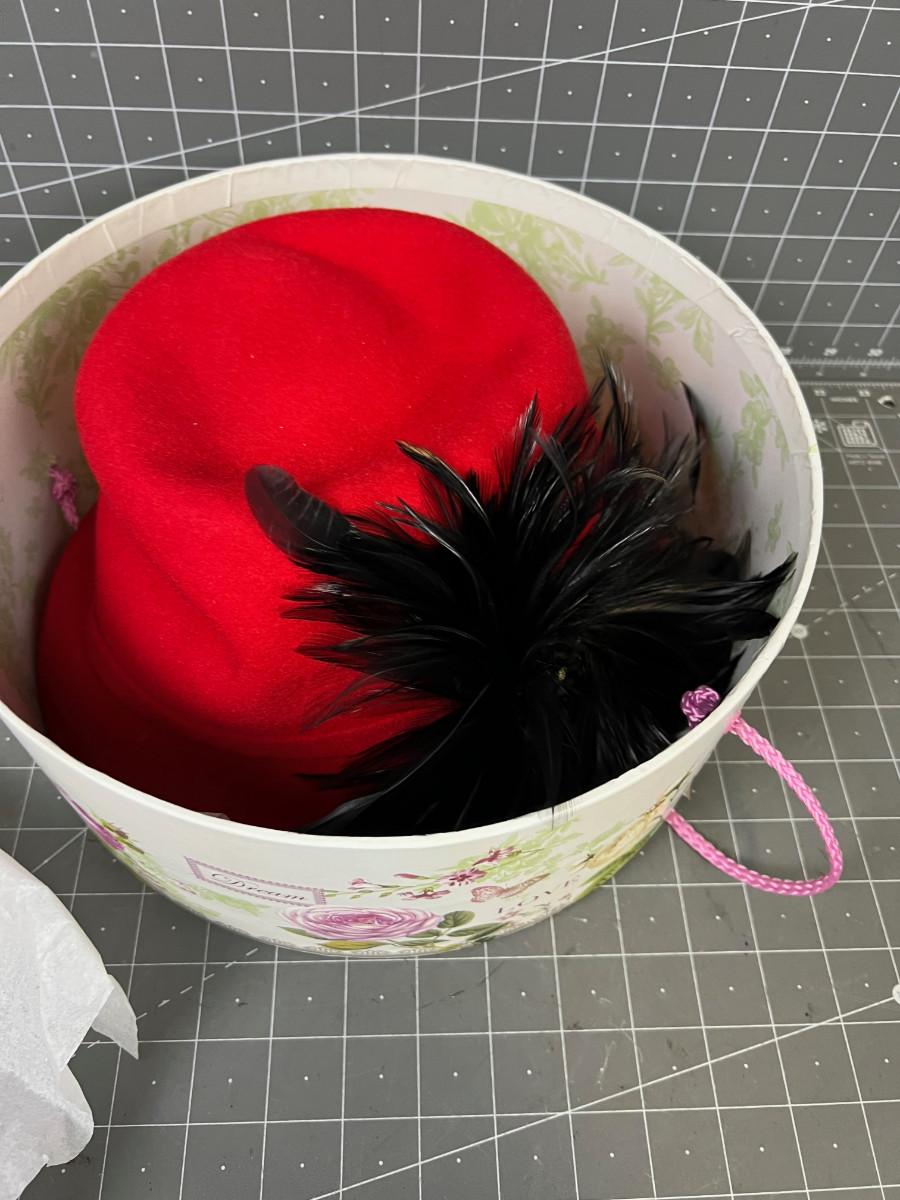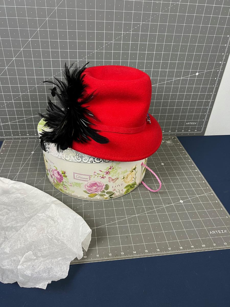 Flower Hat Box with 1Red Hat that has a Black Feather #2