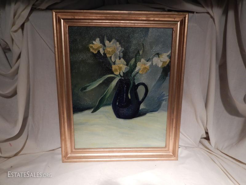 Flower in Pitcher Oil on Canvas Dahllof Lot # 19.5 X 24
