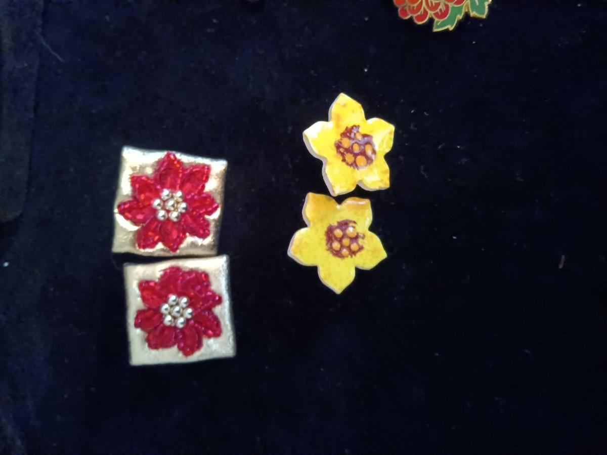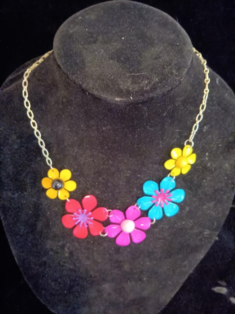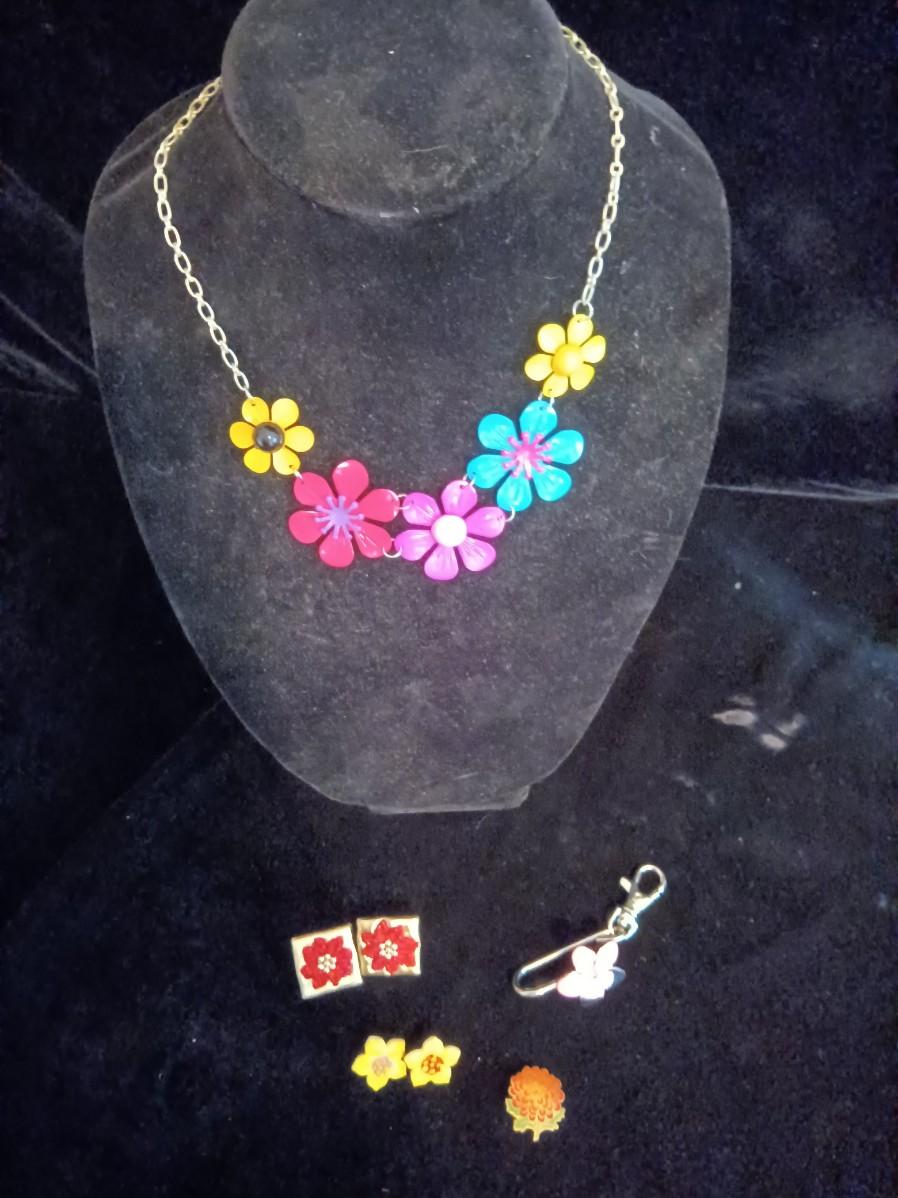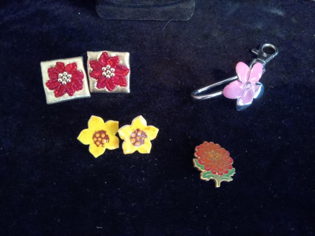 A FLORAL NECKLACE, EARRINGS AND A PENDANT