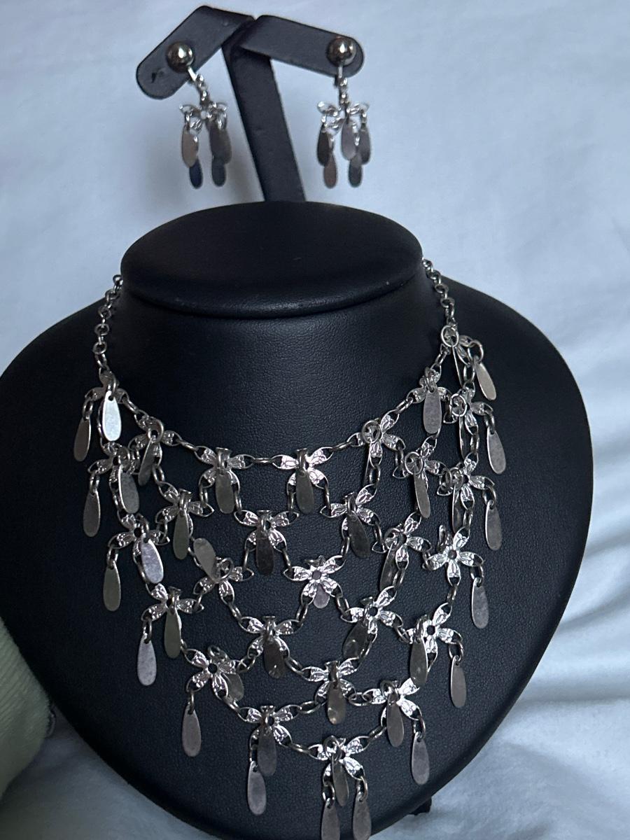 Cute silver tone matching set