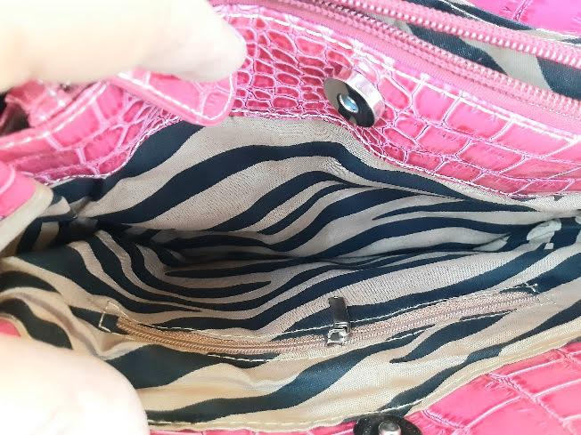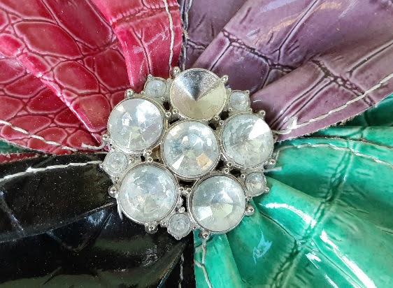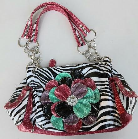 Fun purse with multicolored flower. has one crystal missing as shown. measures 8in. tall and 14in. long.
