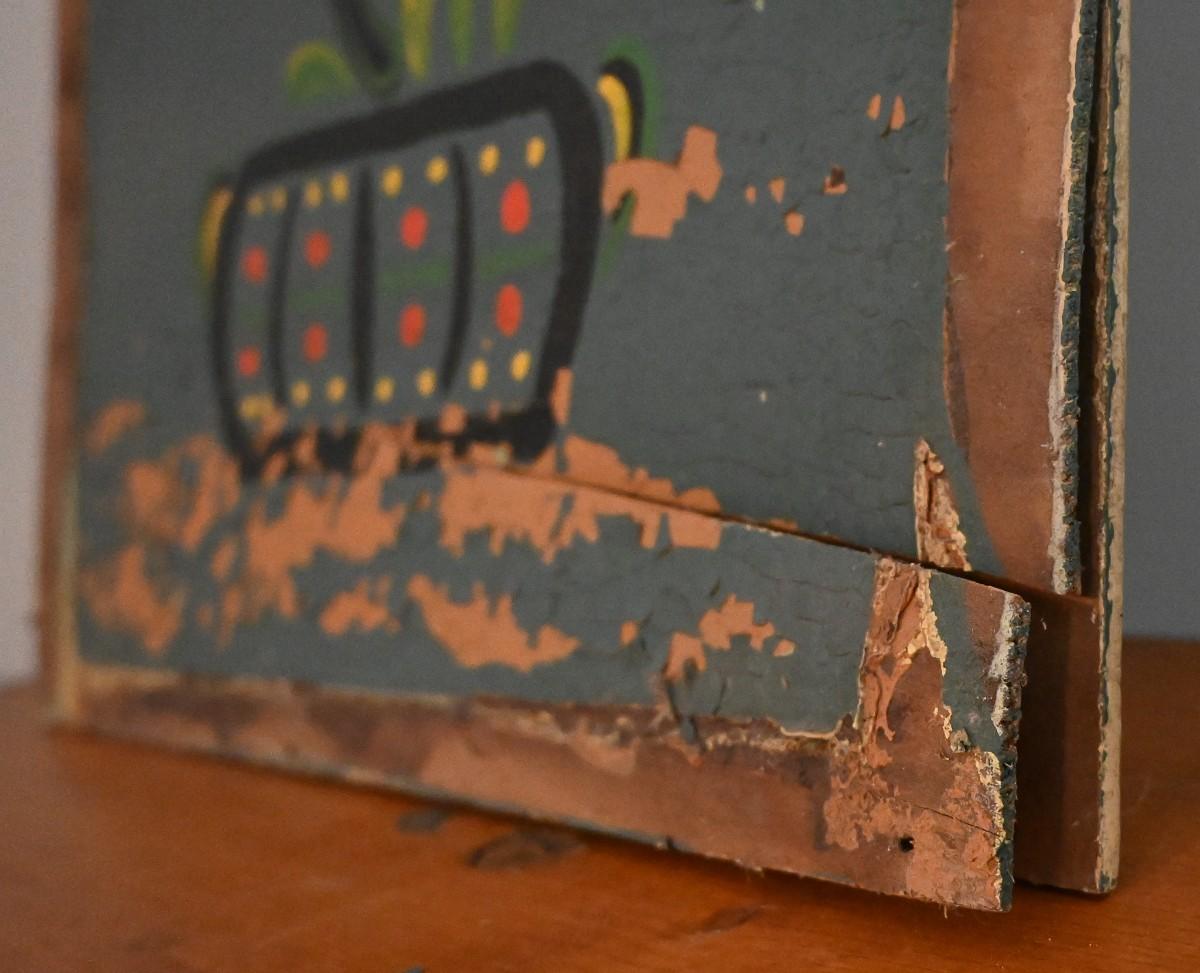 An untitled work by an unknown or anonymous artist. Mixed media. Approx. 31" x 13". Please note, the wooden "canvas" has split near the base, as pictured.