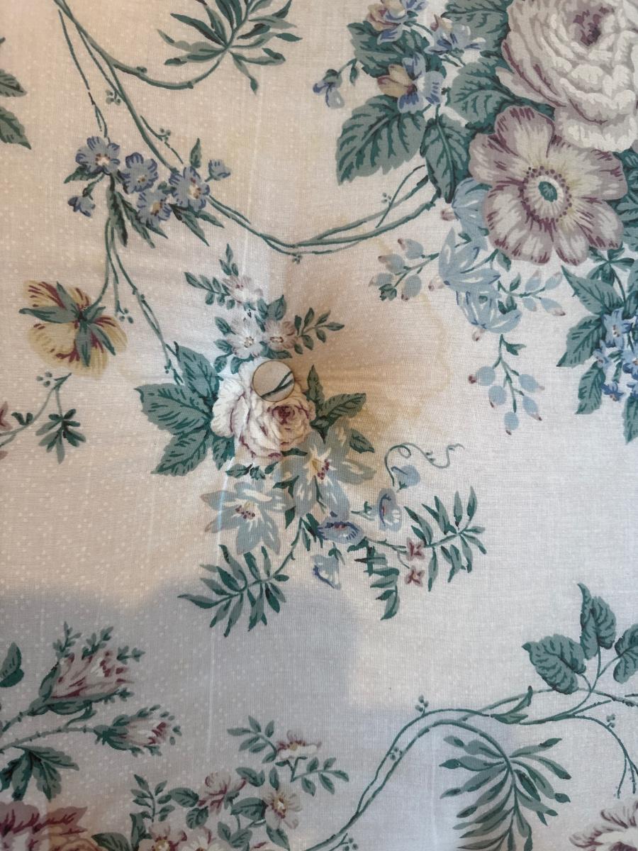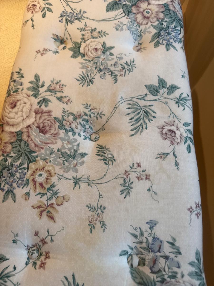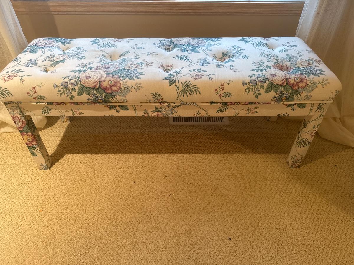 Has visible stains. Will need a good cleaning. Dimensions are 47 inches long by 15 1/2 inches deep by 18 1/2 inches tall.