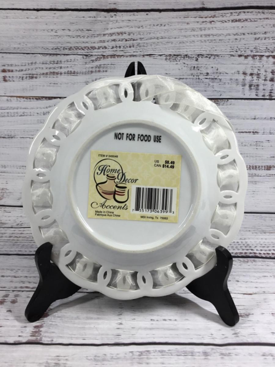Home Decor Accents. Made in China. Not for food use. Paint on the side of the plate. About 8”.
