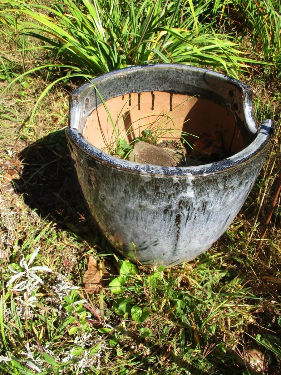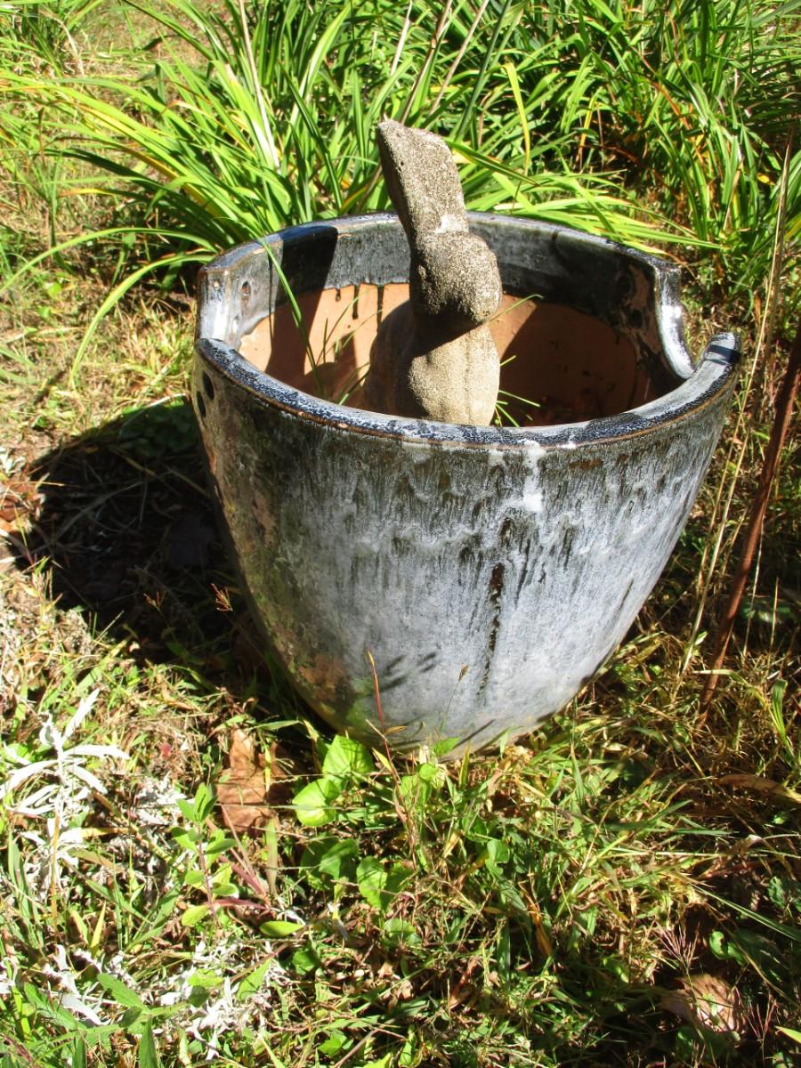 Glazed Ceramic Flower Pot- Approx 15" in Diameter, 16 1/2" Tall. Concrete rabbit not included.