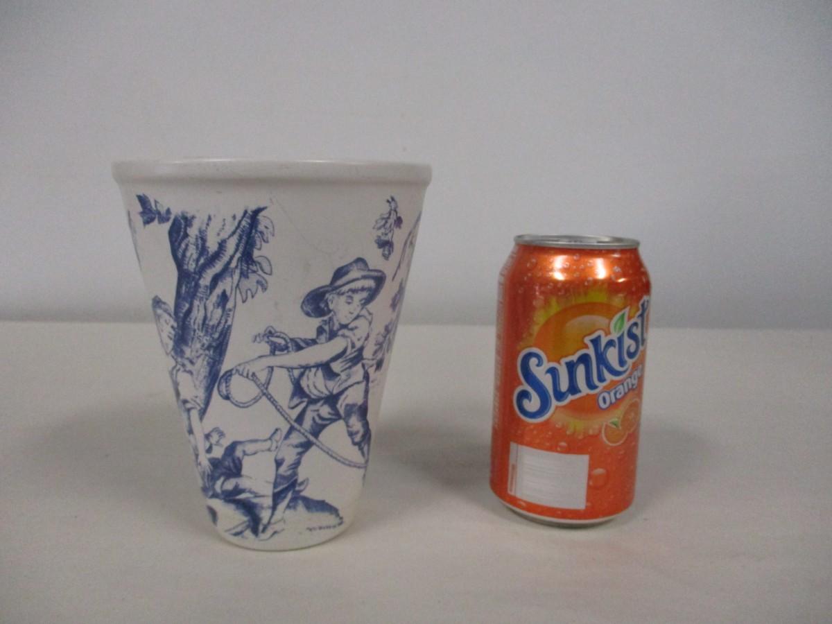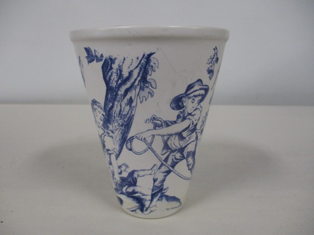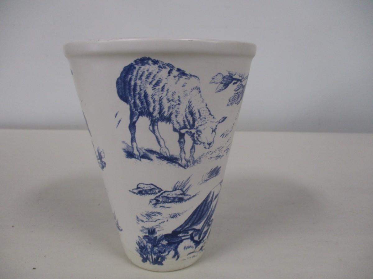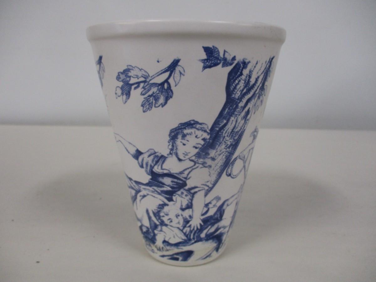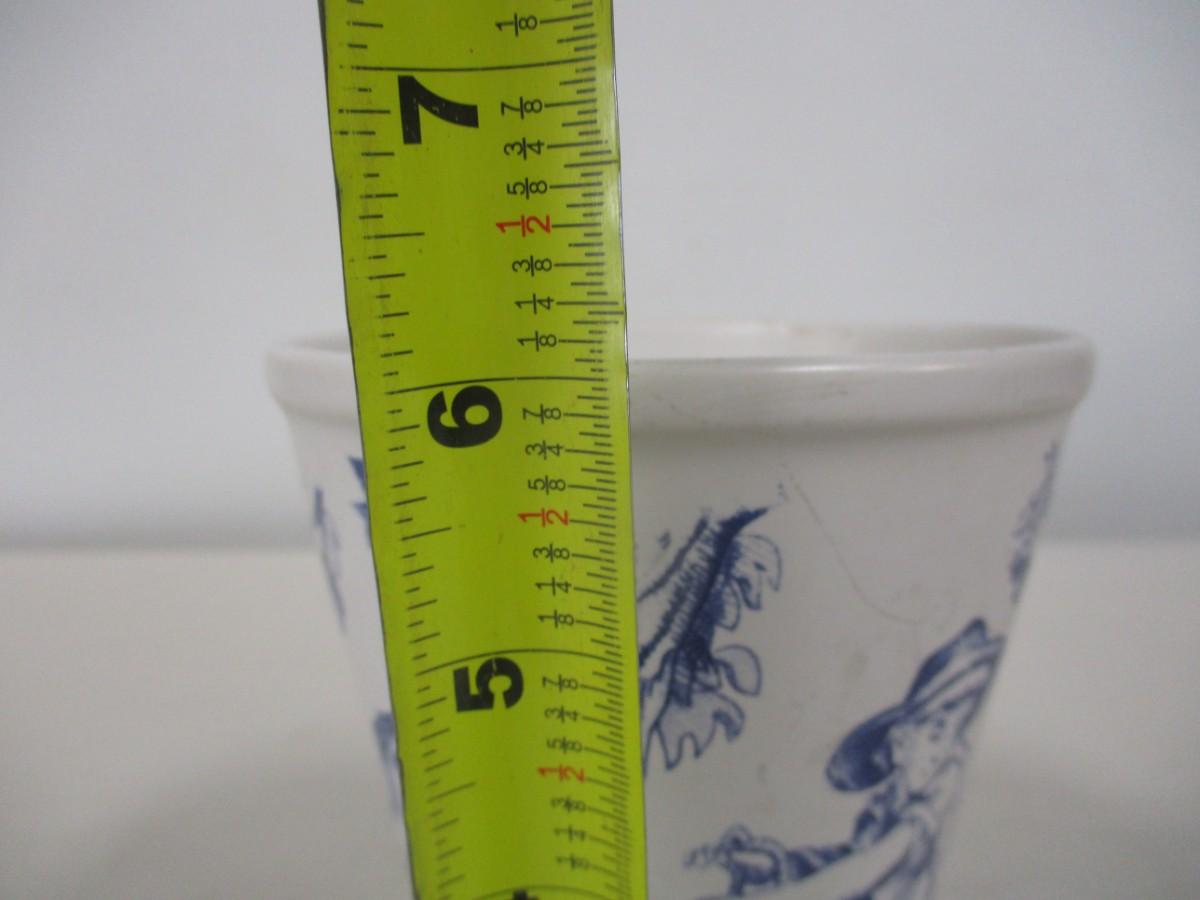 Glazed Ceramic Flower Pot in Classic Blue and White- Approx 5" in Diameter, 6" Tall