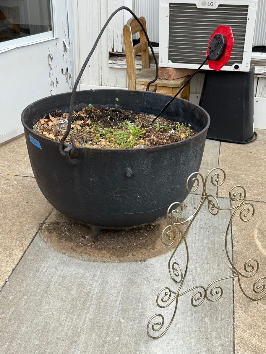 Black large pot has hole in it