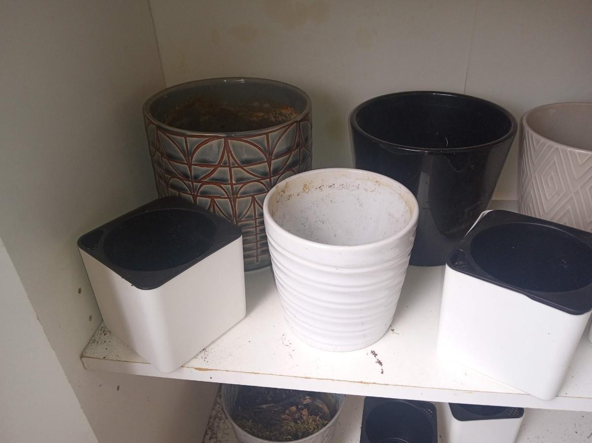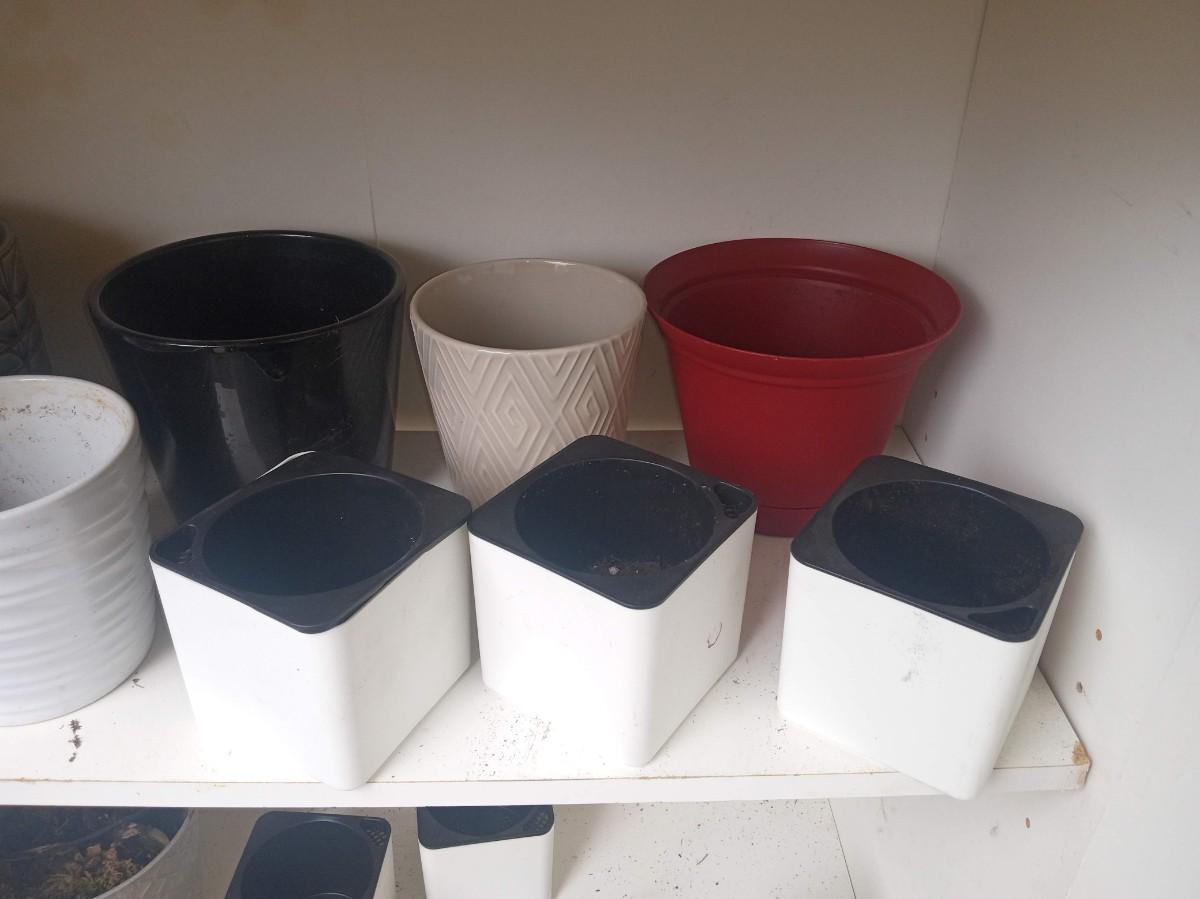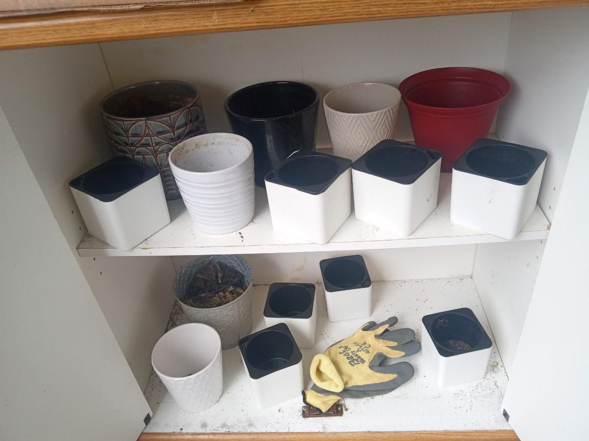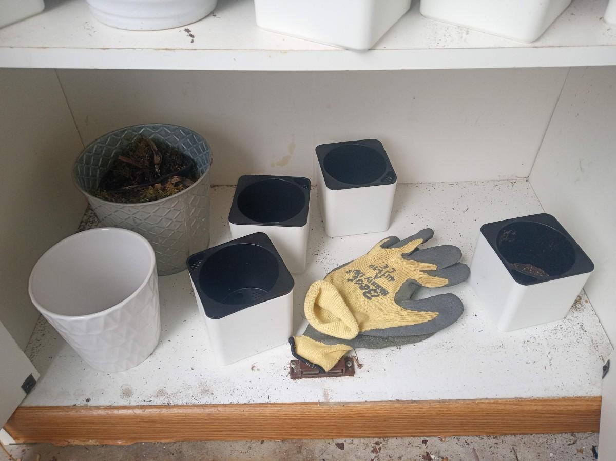 FLOWER POTS AND A PAIR OF WORK GLOVES