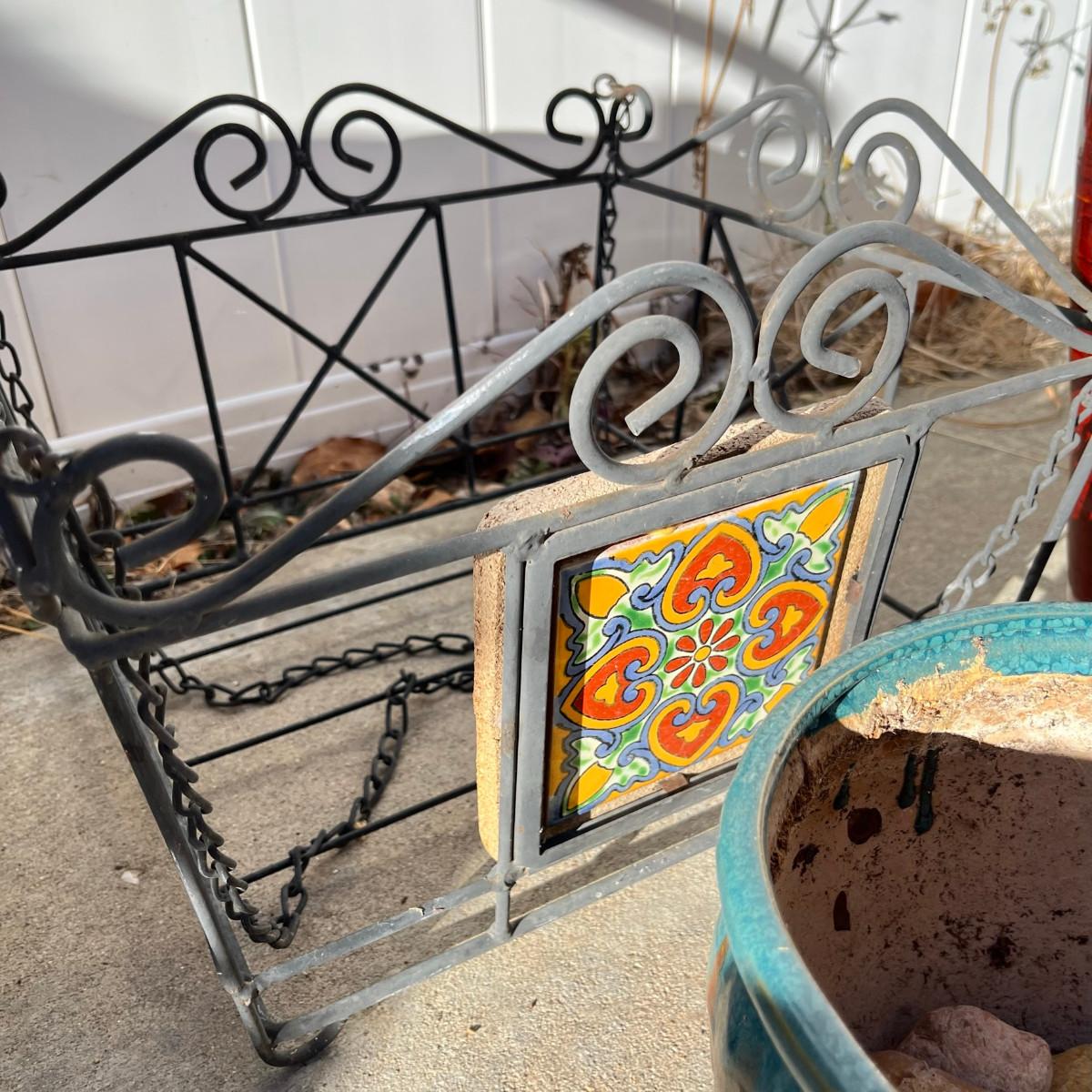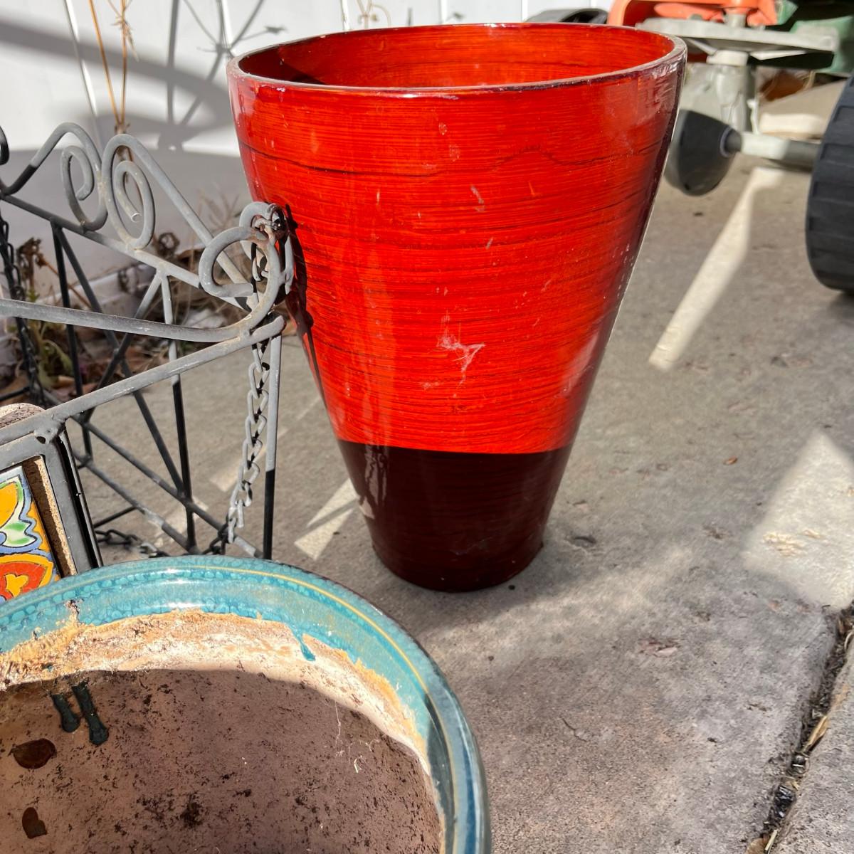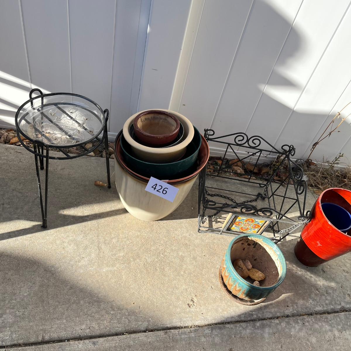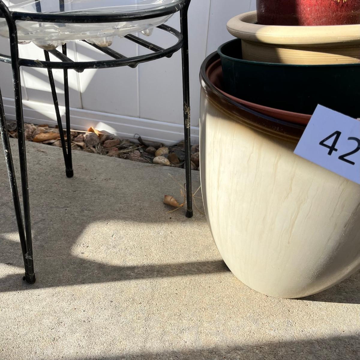 Both ceramic & plastic pots. Wire stands and baskets.