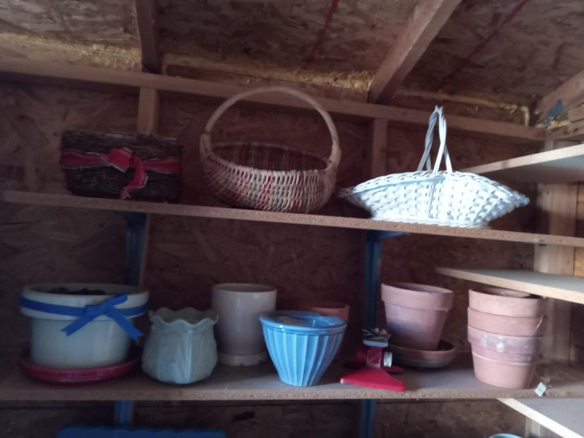FLOWER POTS, WICKER BASKETS AND SPRINKLER