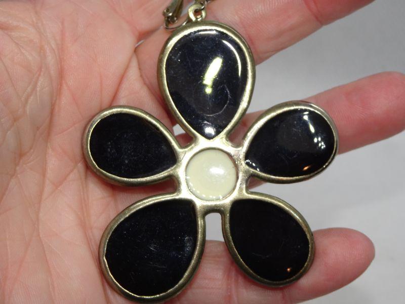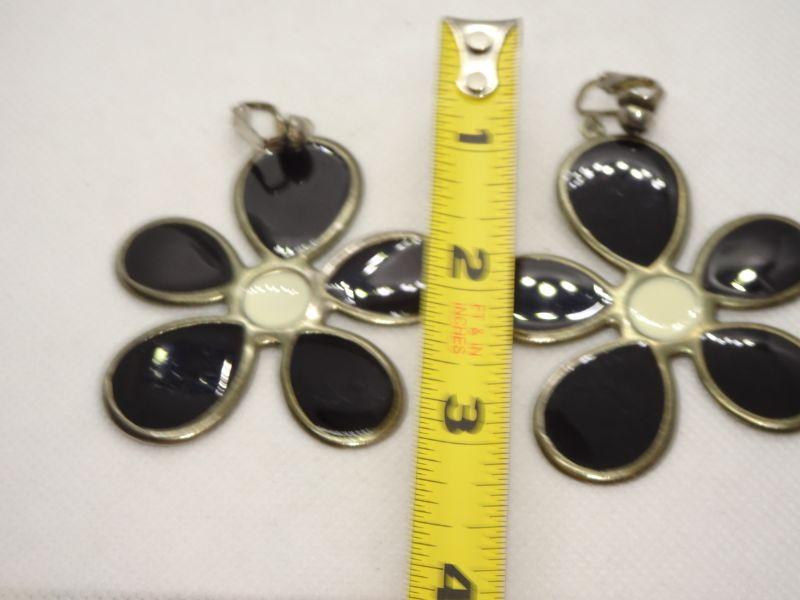 FLOWER POWER Mod - Black & White Dangle Clip Earrings