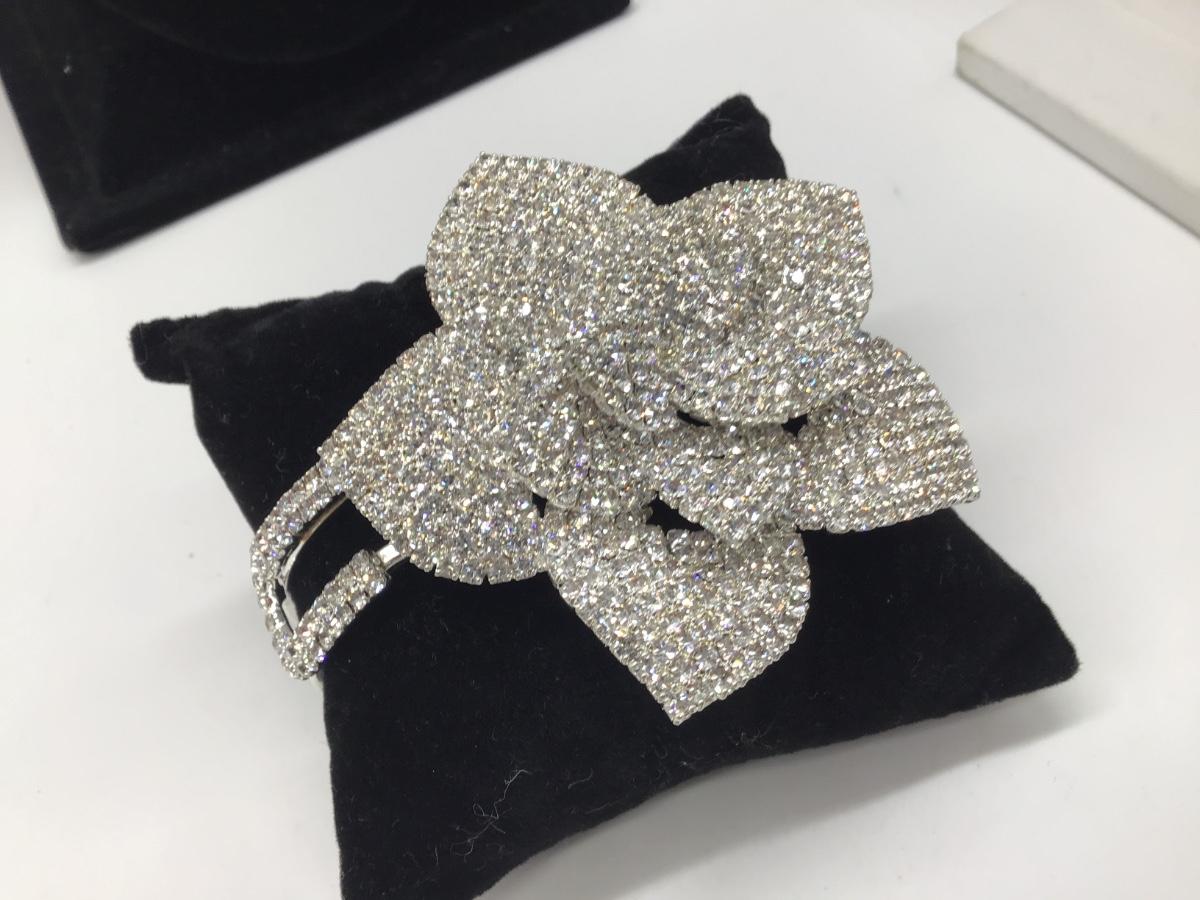 Flower Rhinestone Hinged Costume Bracelet