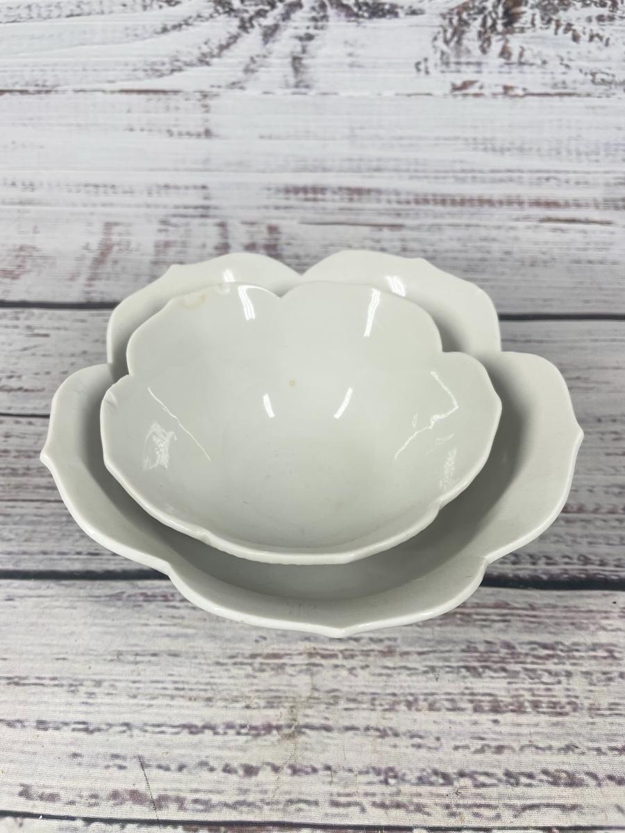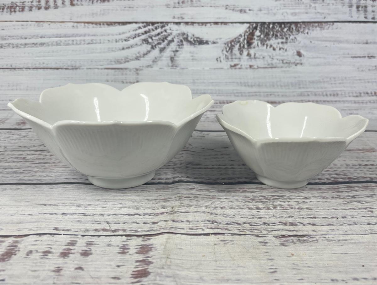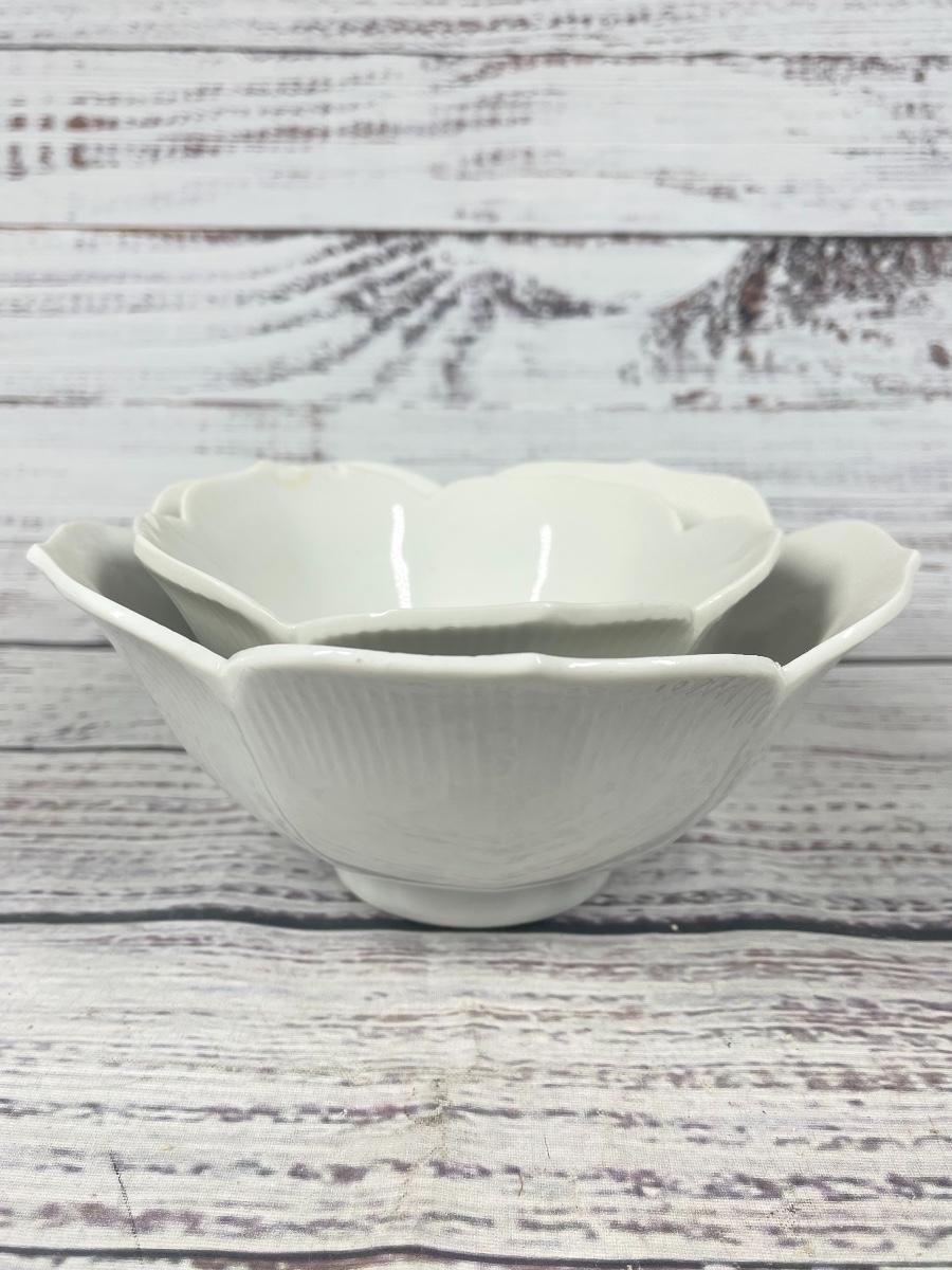 Lotus Flower Shaped Set of Two White Noodle Rice Bowls