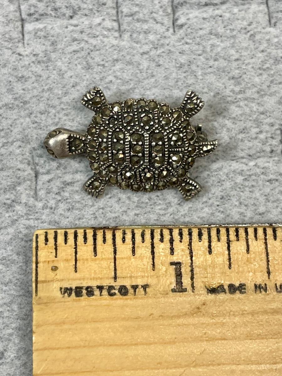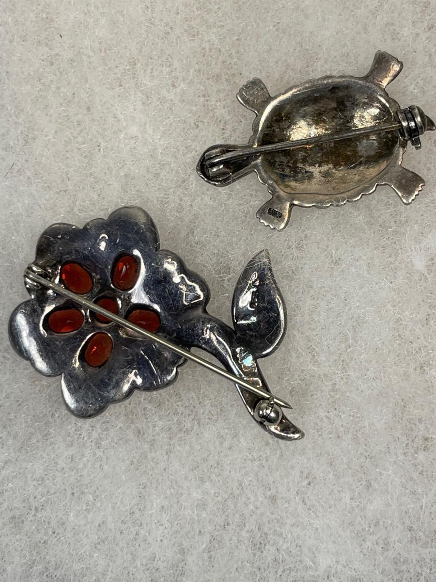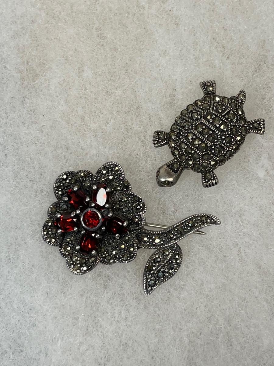 Flower & Turtle Sterling and marcasite pins