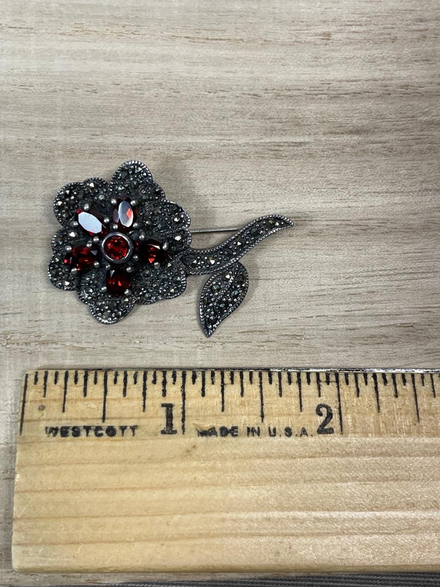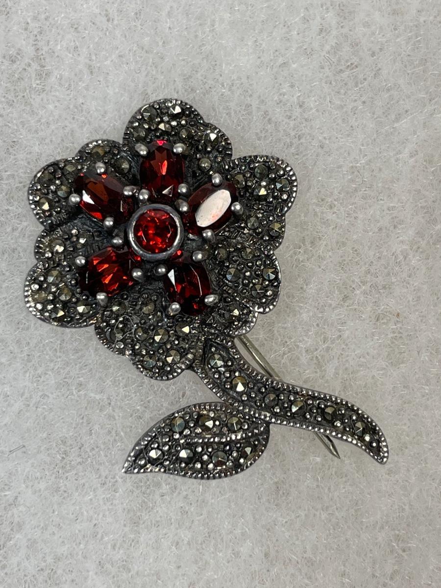 Flower has garnet stones.