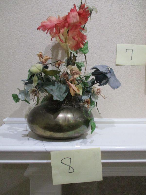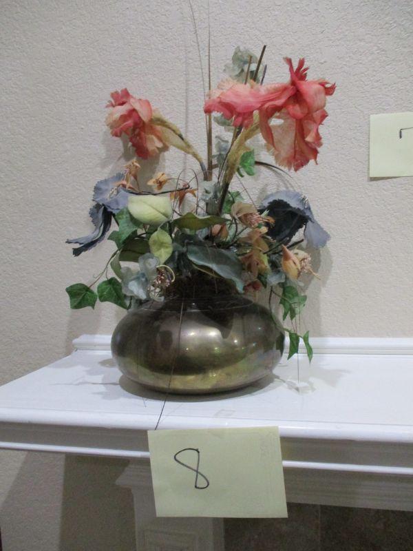 Brass Round Vase. Made in India. Good condition. Faux flowers.