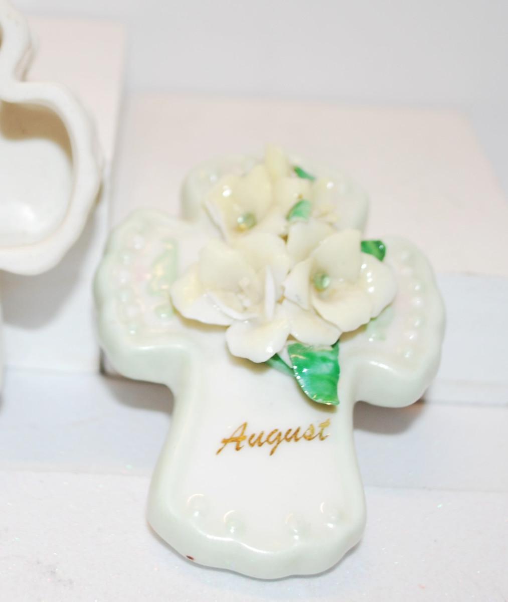 Flowered Ceramic Cross Jewelry Trinket Box -- Marked "August"