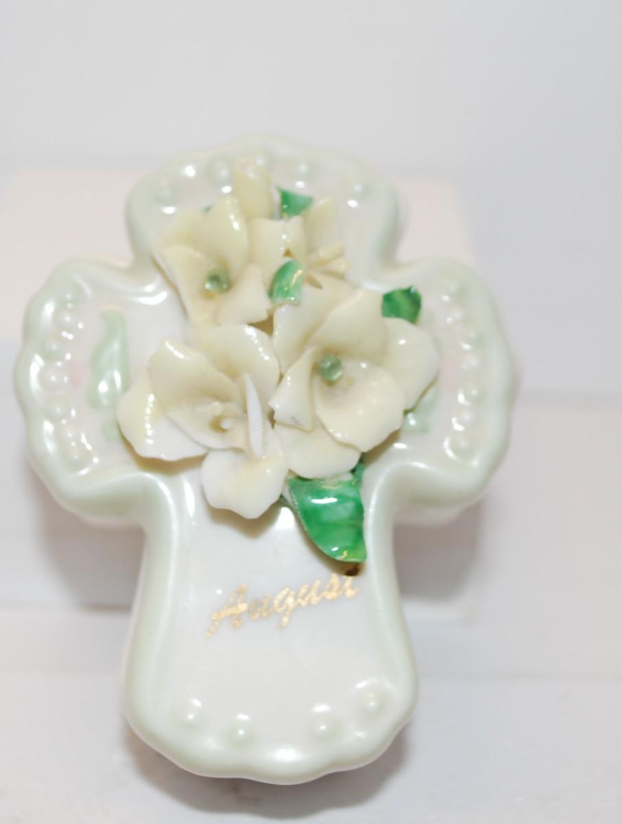 Flowered Ceramic Cross Trinket Box -- Marked "August"