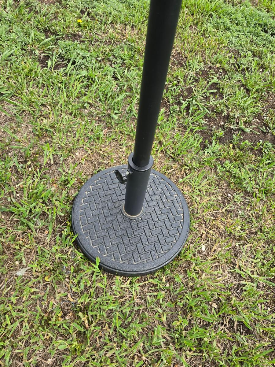 Add a splash of garden charm to your patio or backyard with this cheerful floral umbrella. Featuring a sturdy black metal pole and weighted base, it's both stylish and functional for sunny days.