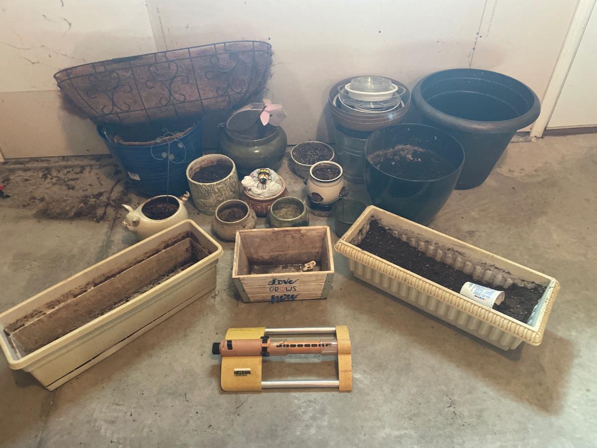 Flowering pots, garden decor and Nelson Sprinkler