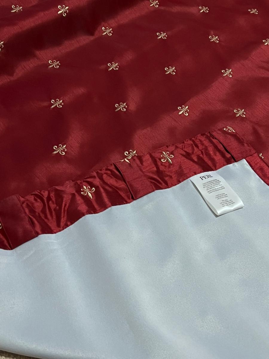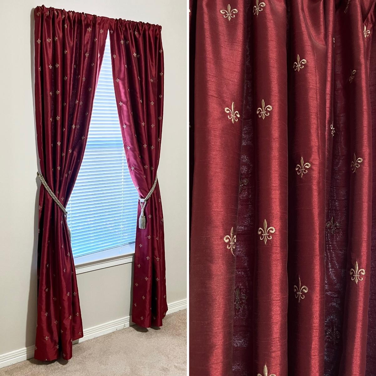 PERI ~ Pair (2) Wine & Taupe Fluer De Lis Curtain Panels