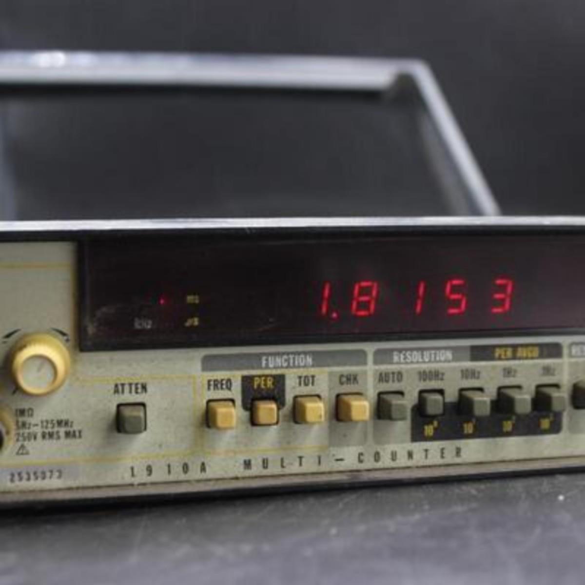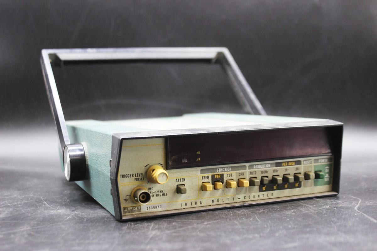 Fluke 1910a Multifunction Frequency Counter, there is no significant damage to the body of the frequency counter and is in good condition. The counter display comes on when plugged in and powered on, check pictures for more details and for sizing.