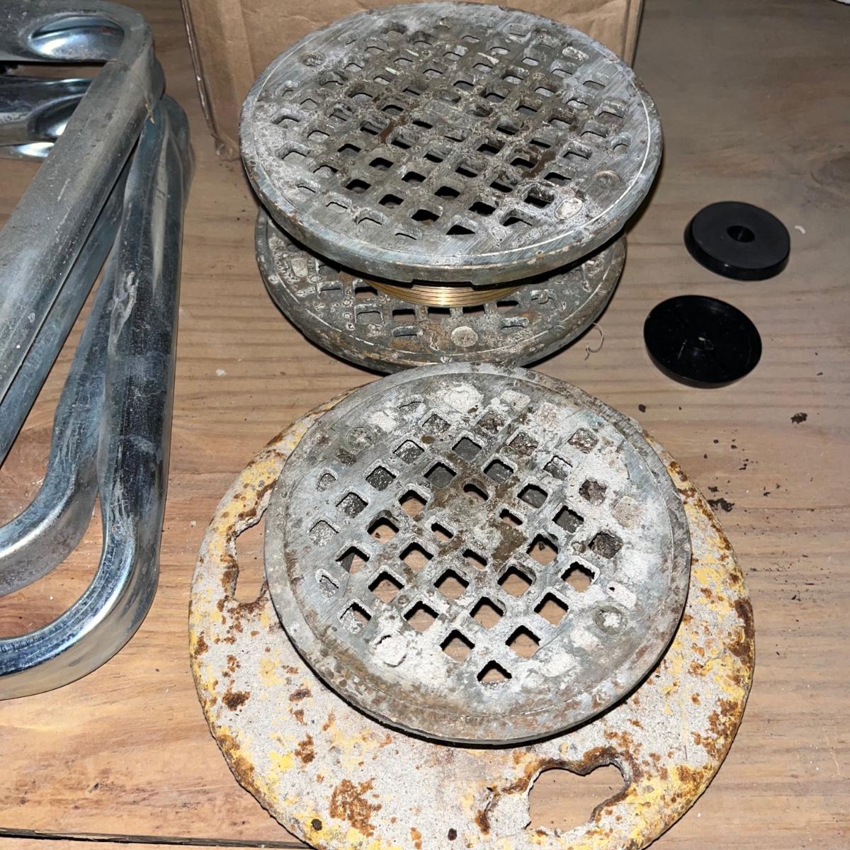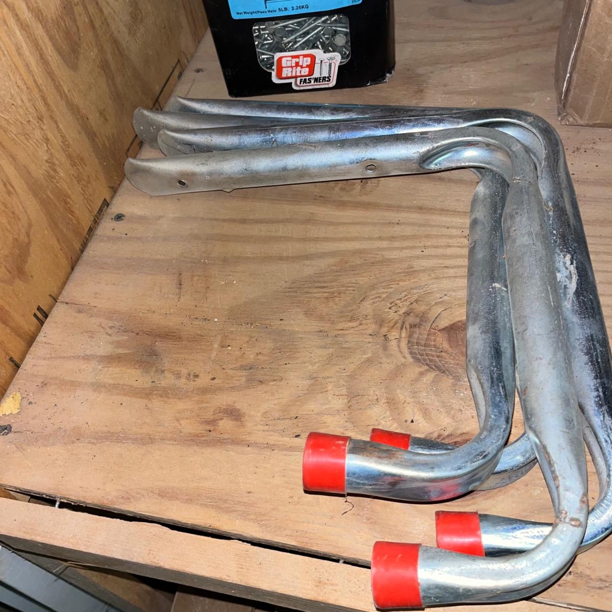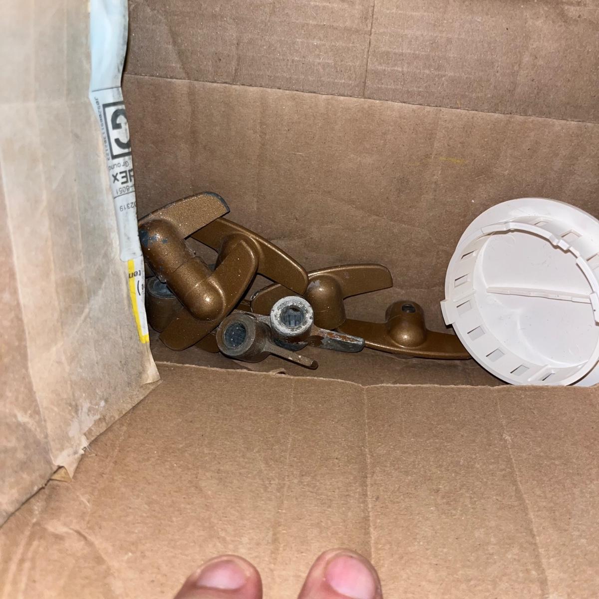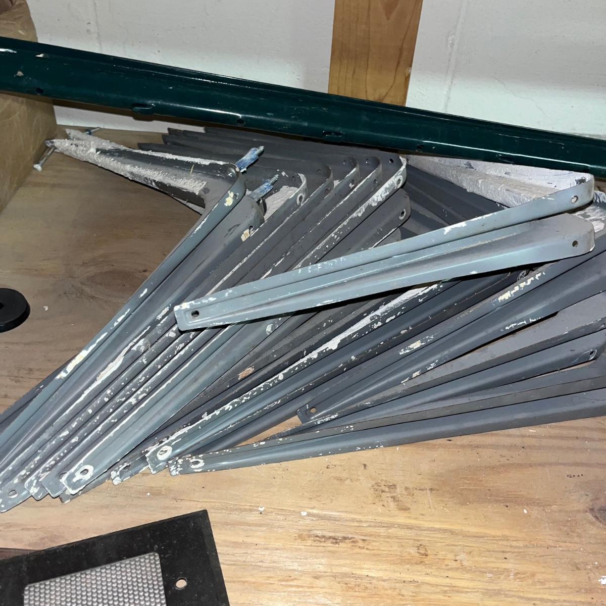 Lot includes three 48” fluorescent lamps with an open box of bulbs, Over 12 metal shelf brackets, door hinges, drains, soft close cabinet hinges and more.