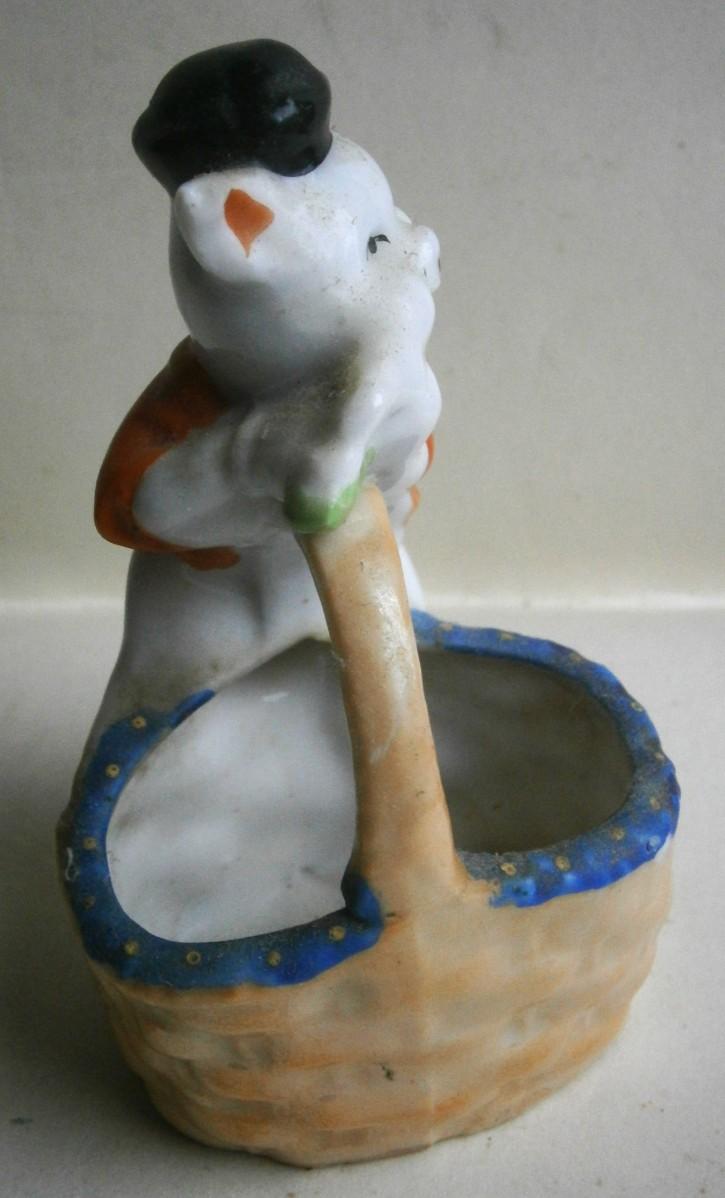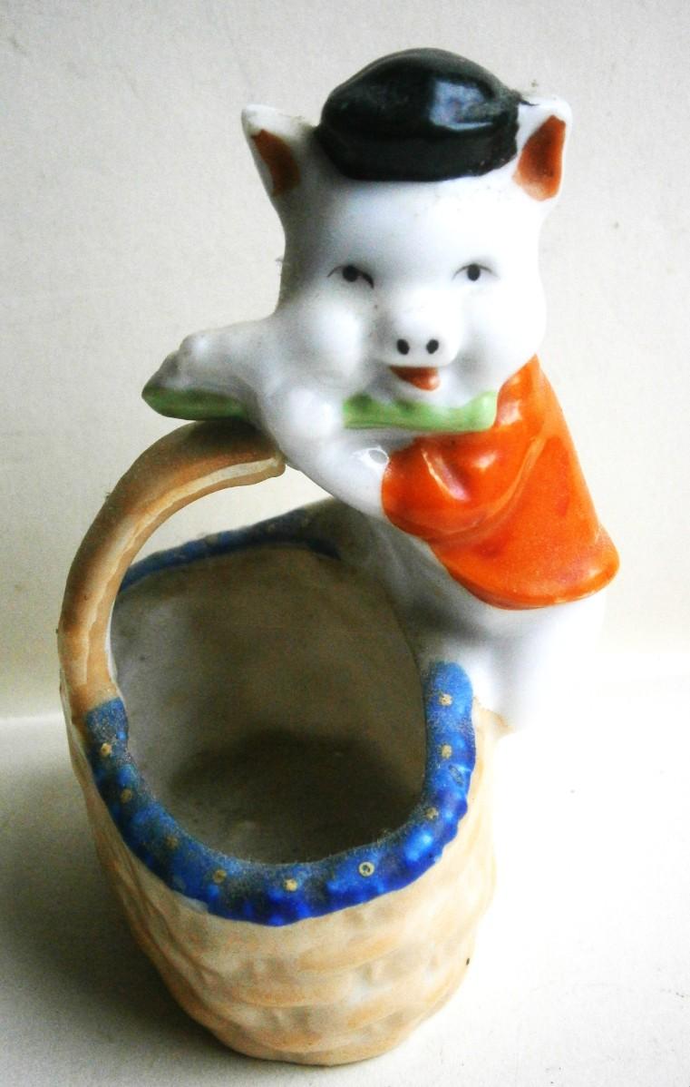 Flute Player Little Pig made in Japan, 3 3/4 in. tall, painted porcelain, from the 1950's.
